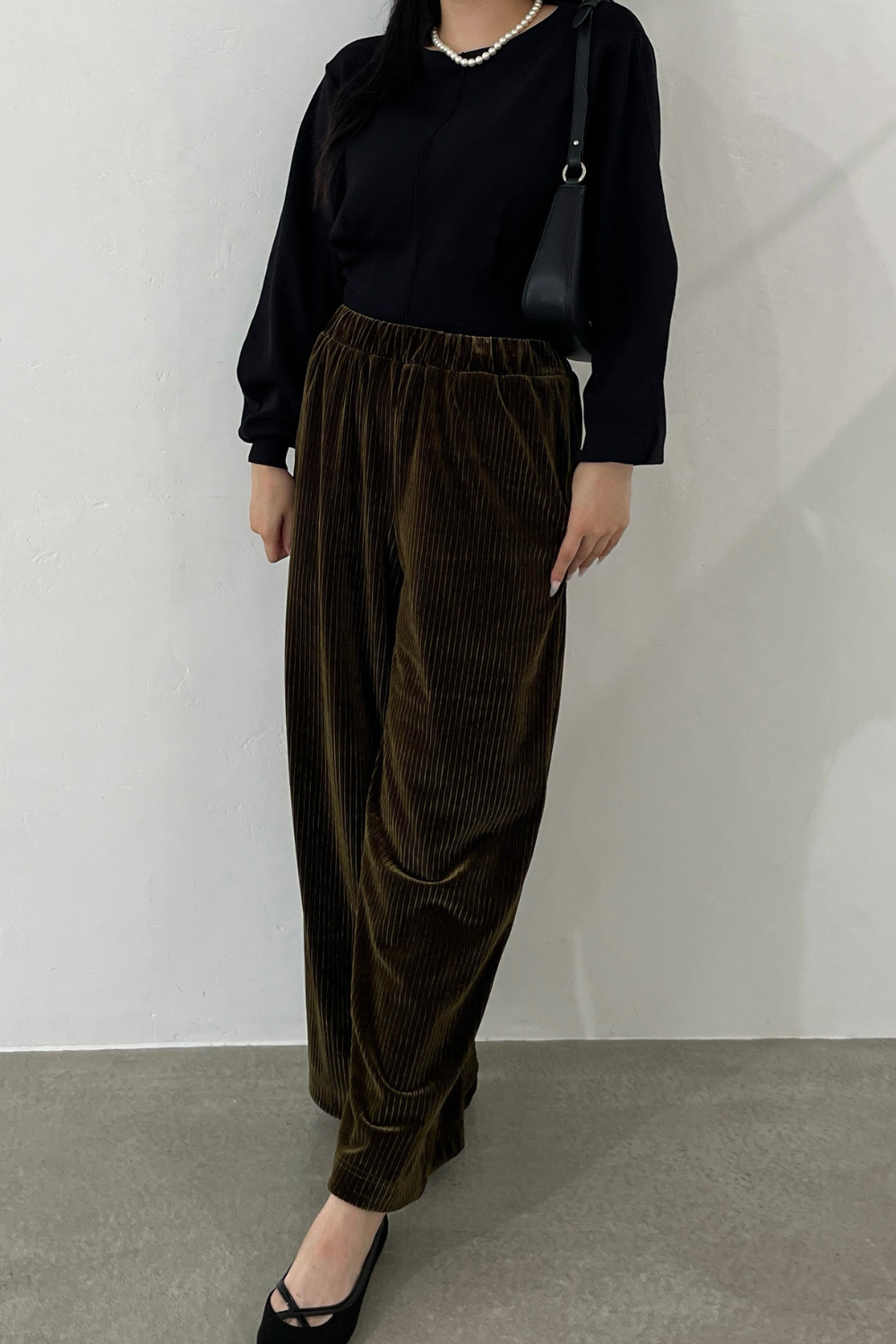 カーキのベロアだけで抜け感が出てお洒落上級者に見えてとってもお得コーデです🎶