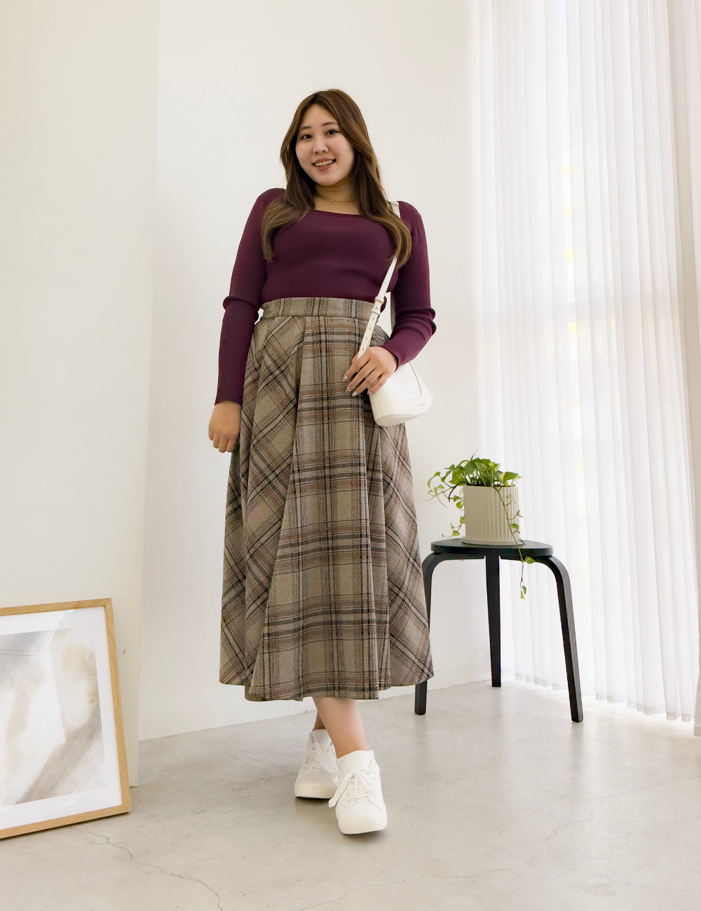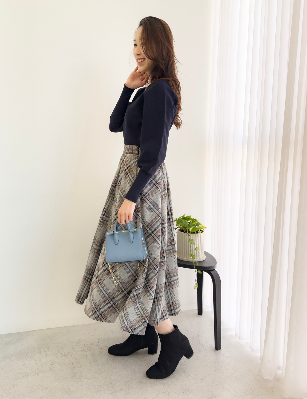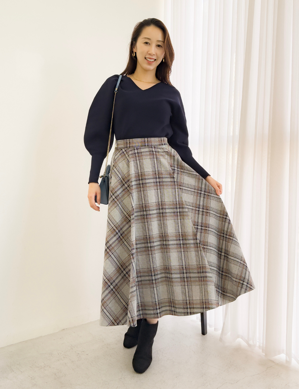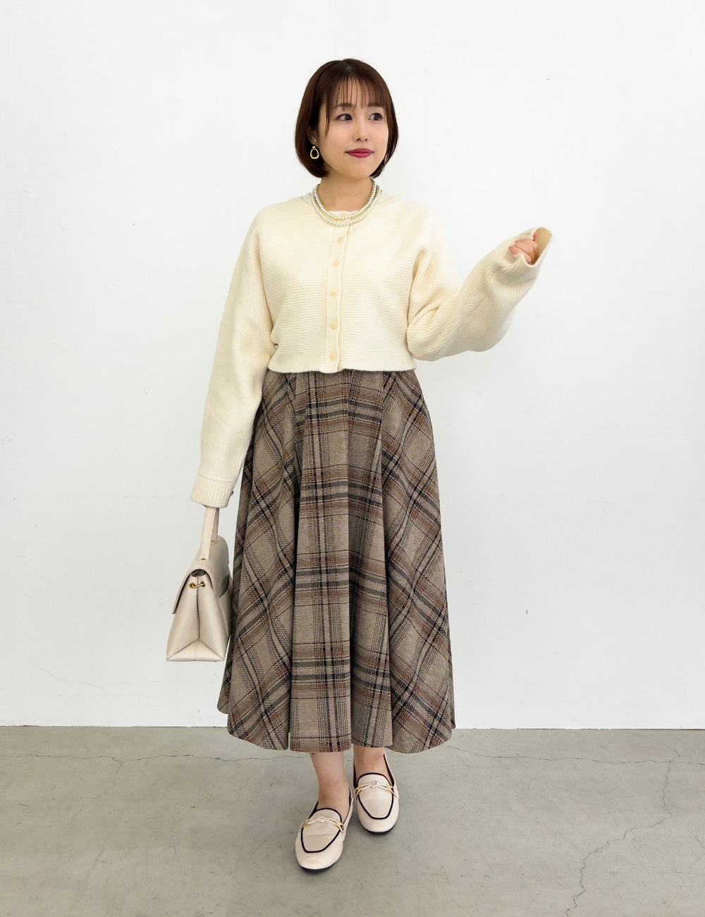 大人顔のきれいめチェックは、通勤から週末まで幅広く活躍します。