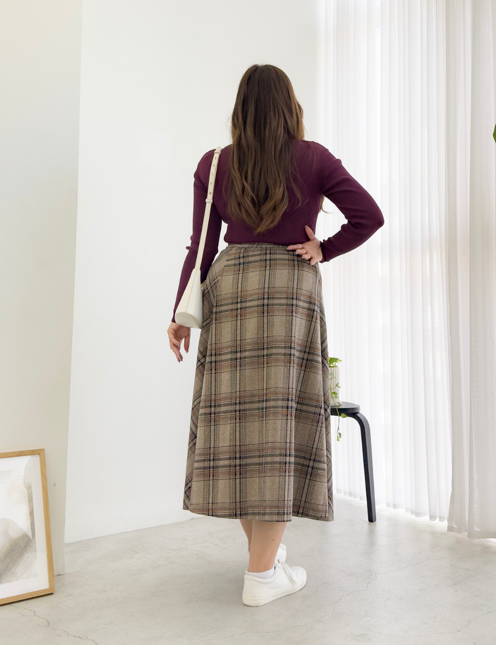 落ち着いたトーンの大柄チェックに、パネル切り替えで柄の向きをあえて斜めに設定。