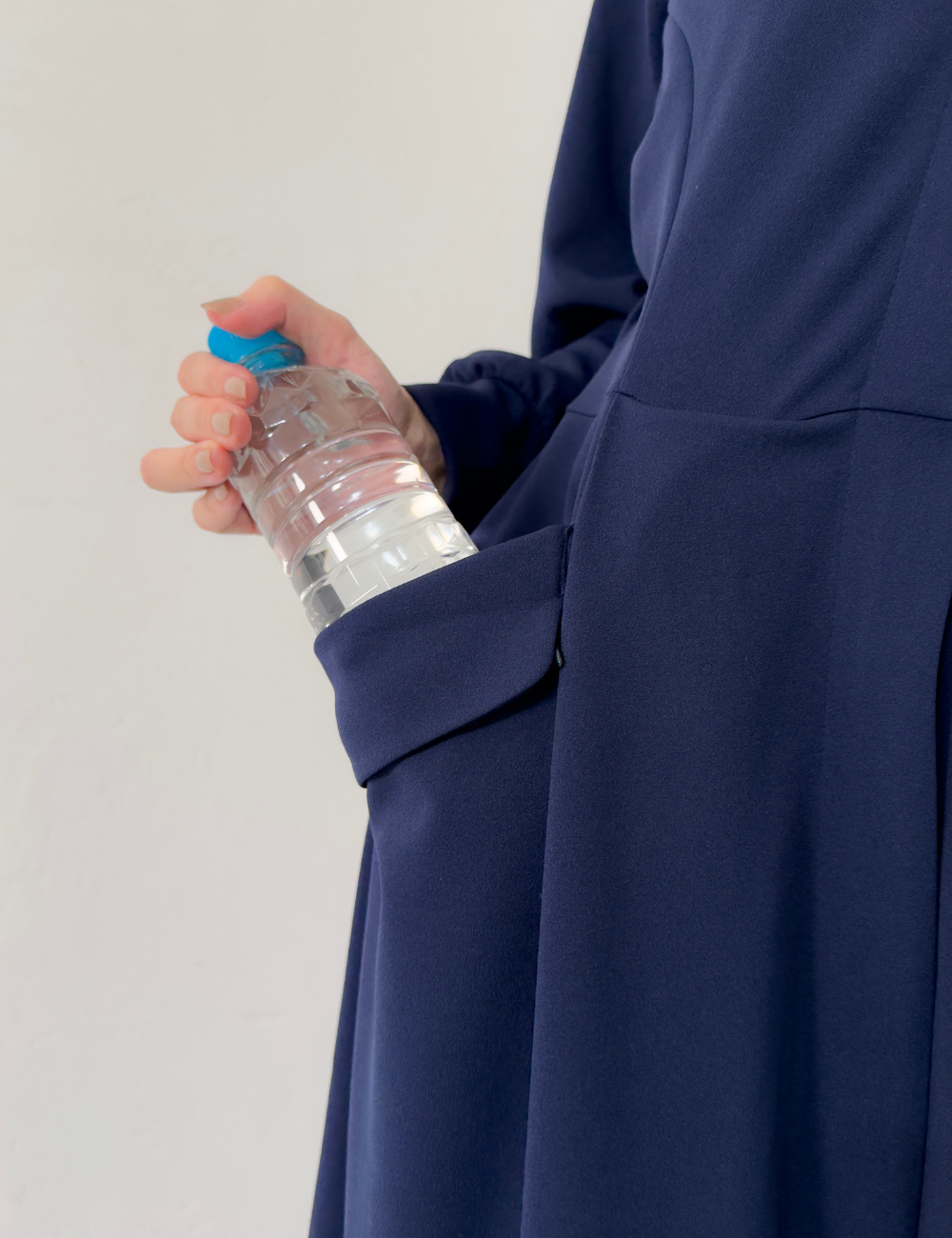 ・Stretchable, matte fabric with a subdued sheen ・Wrinkle-resistant ・Machine washable ・Full-open front zipper makes it easy for those with frozen shoulder or breast cancer survivors to put on and take off ・Two magic pockets that can easily fit a 600ml bottle