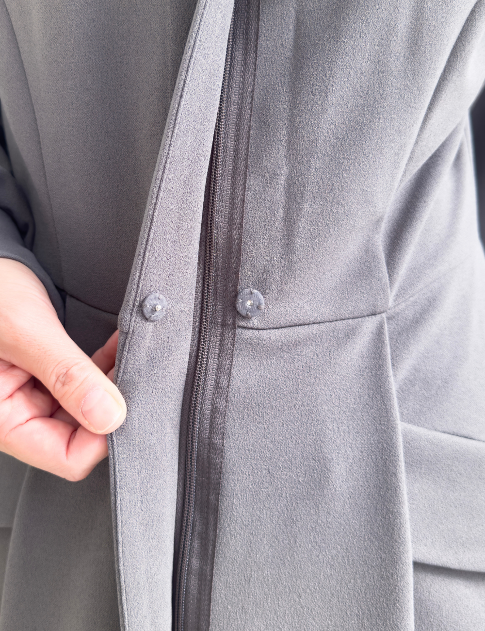 Additionally, snaps have been added to the waist to conceal the zipper, maintaining a clean, beautiful silhouette from any angle.
