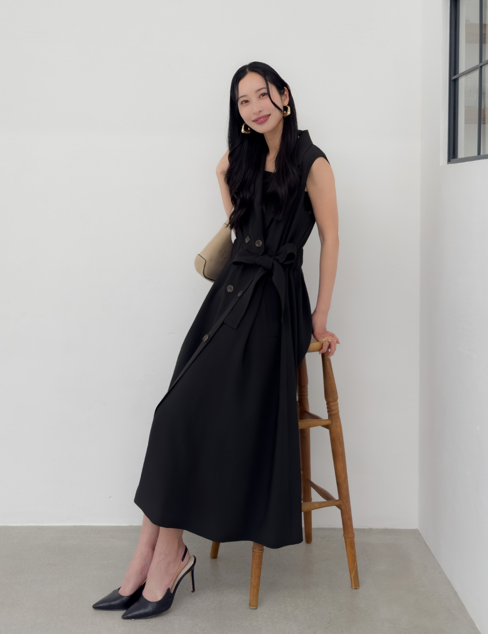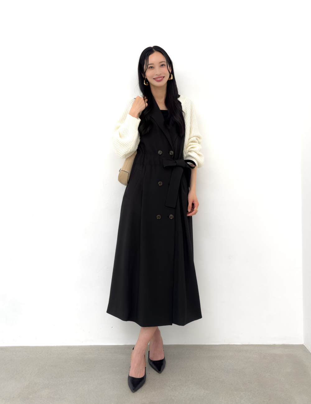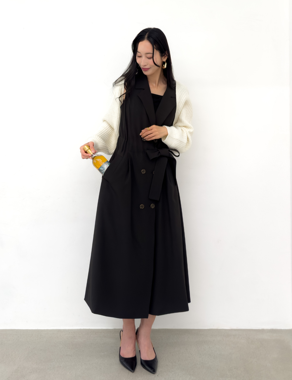 When wearing a knit dress without pockets, layering this gilet dress over it will instantly elevate your style and provide access to the "magical pockets" and an A4-sized pocket on the back!