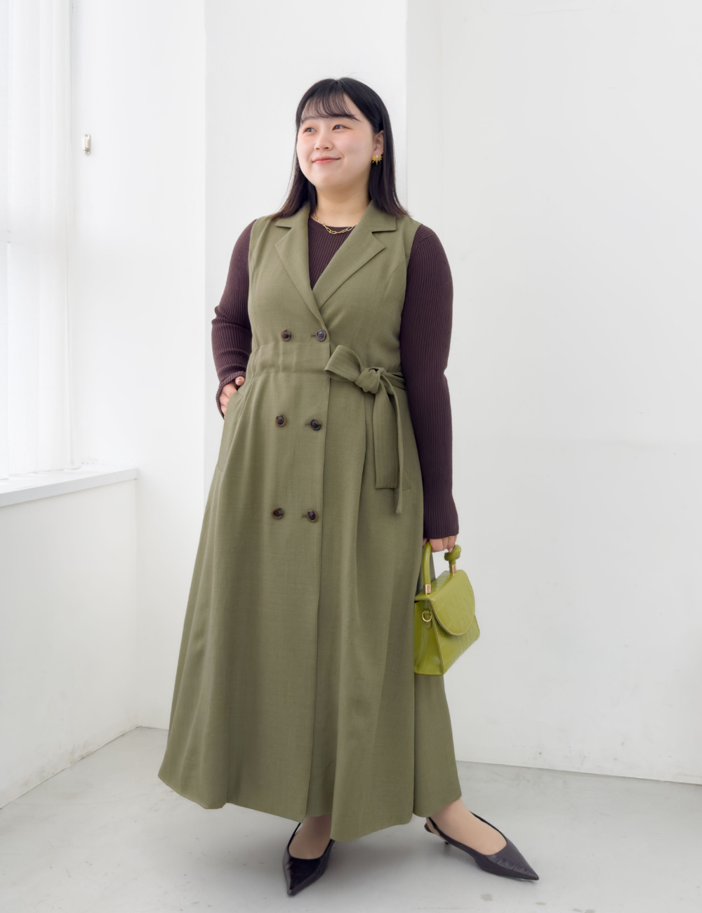 You can also enjoy changing silhouettes by adjusting the waist with the belt.