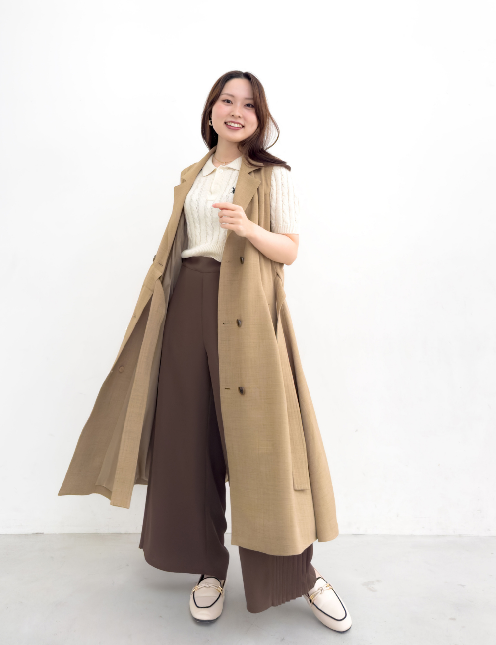 It's an all-season item: wear it with a T-shirt or camisole in summer, long-sleeved innerwear from spring to autumn, and with a knit or coat in winter.