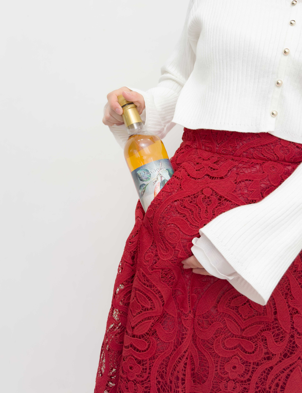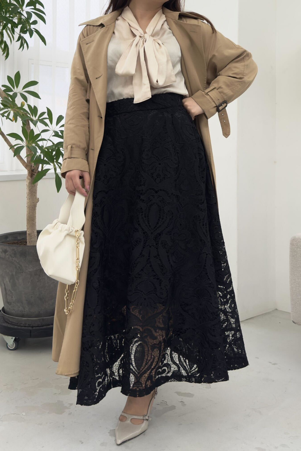 This A-line skirt is a statement piece, featuring a large, eye-catching lace pattern.