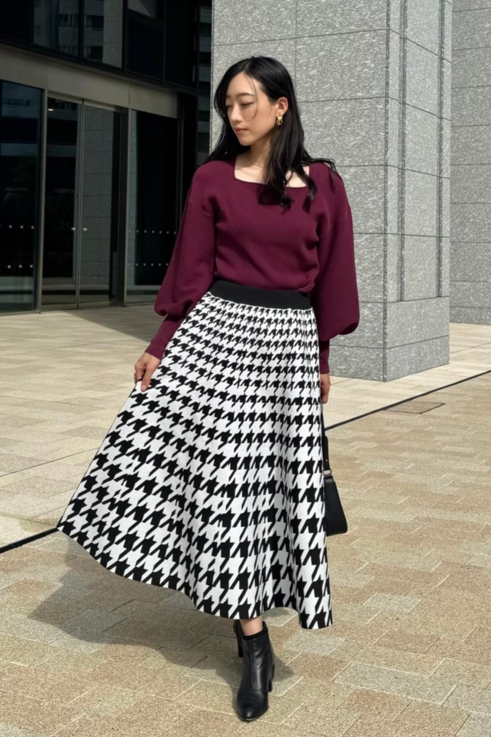 ハウンドトゥースニットスカート