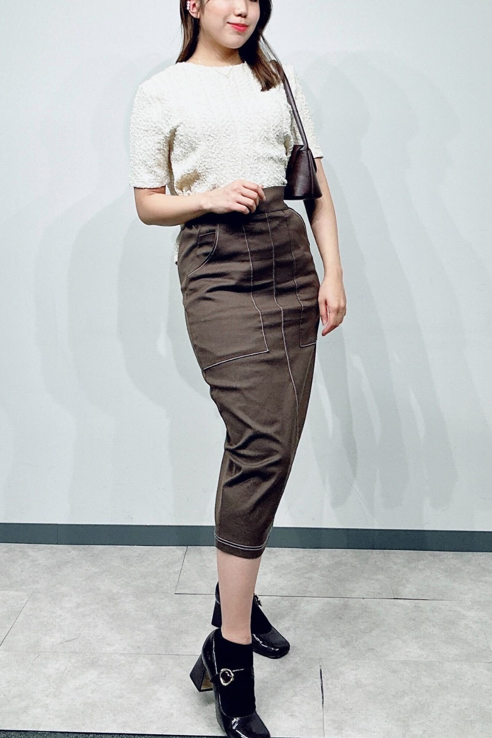 着用アイテム:【ベーシックライン】デニムライクスカート / ブーケセットアップ