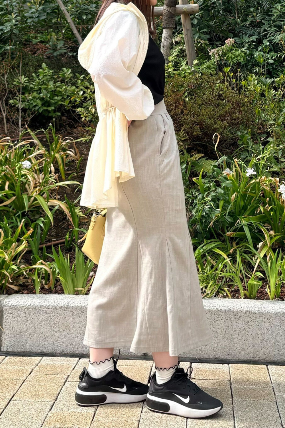 着用アイテム:撥水UVカットパーカー / 【ベーシックライン】ダブルポケットラメマーメイドスカート