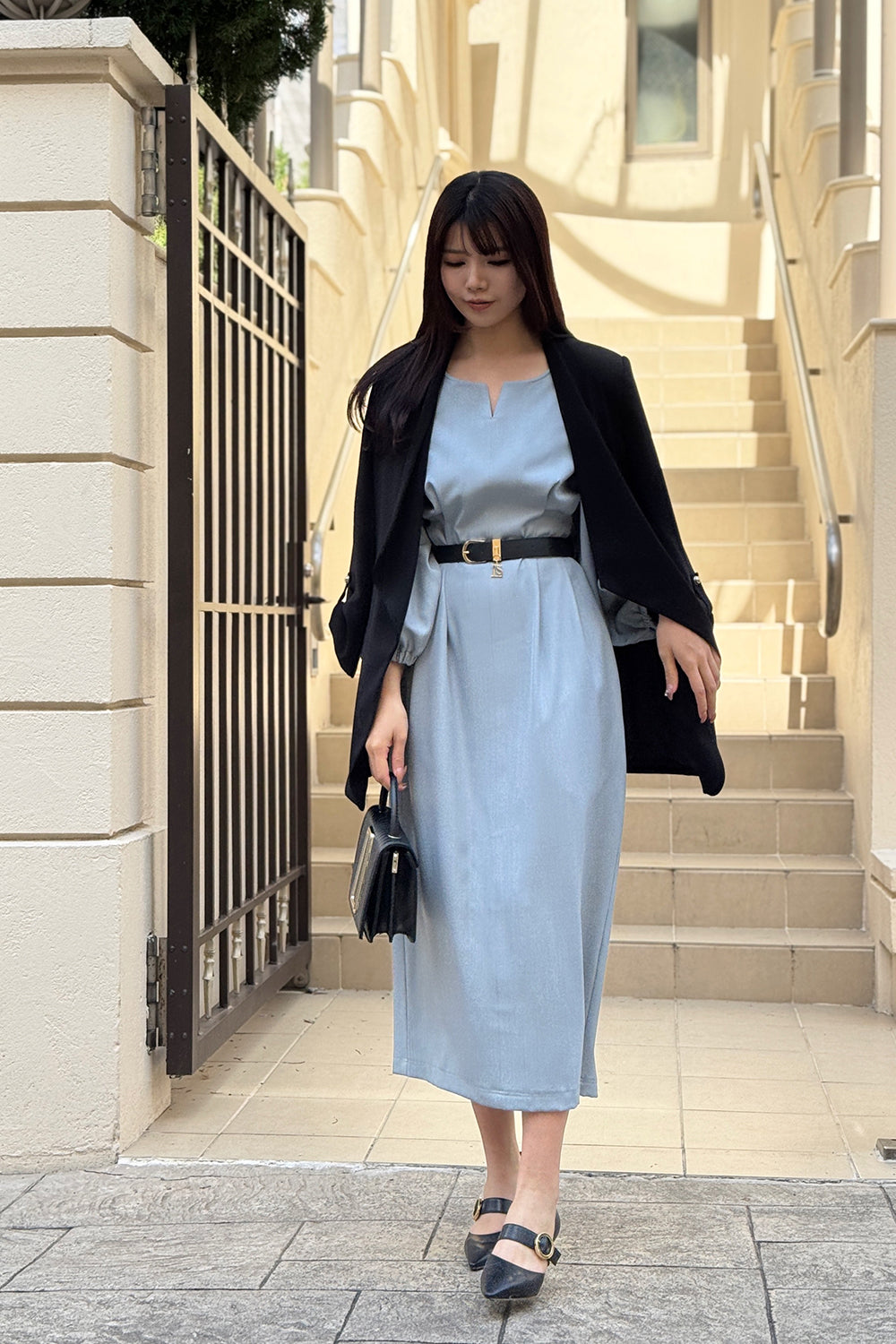 首回りがスッキリ見えるキーネックは、胸元が開きすぎていないので上品な印象に◎