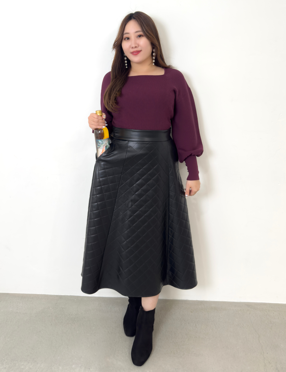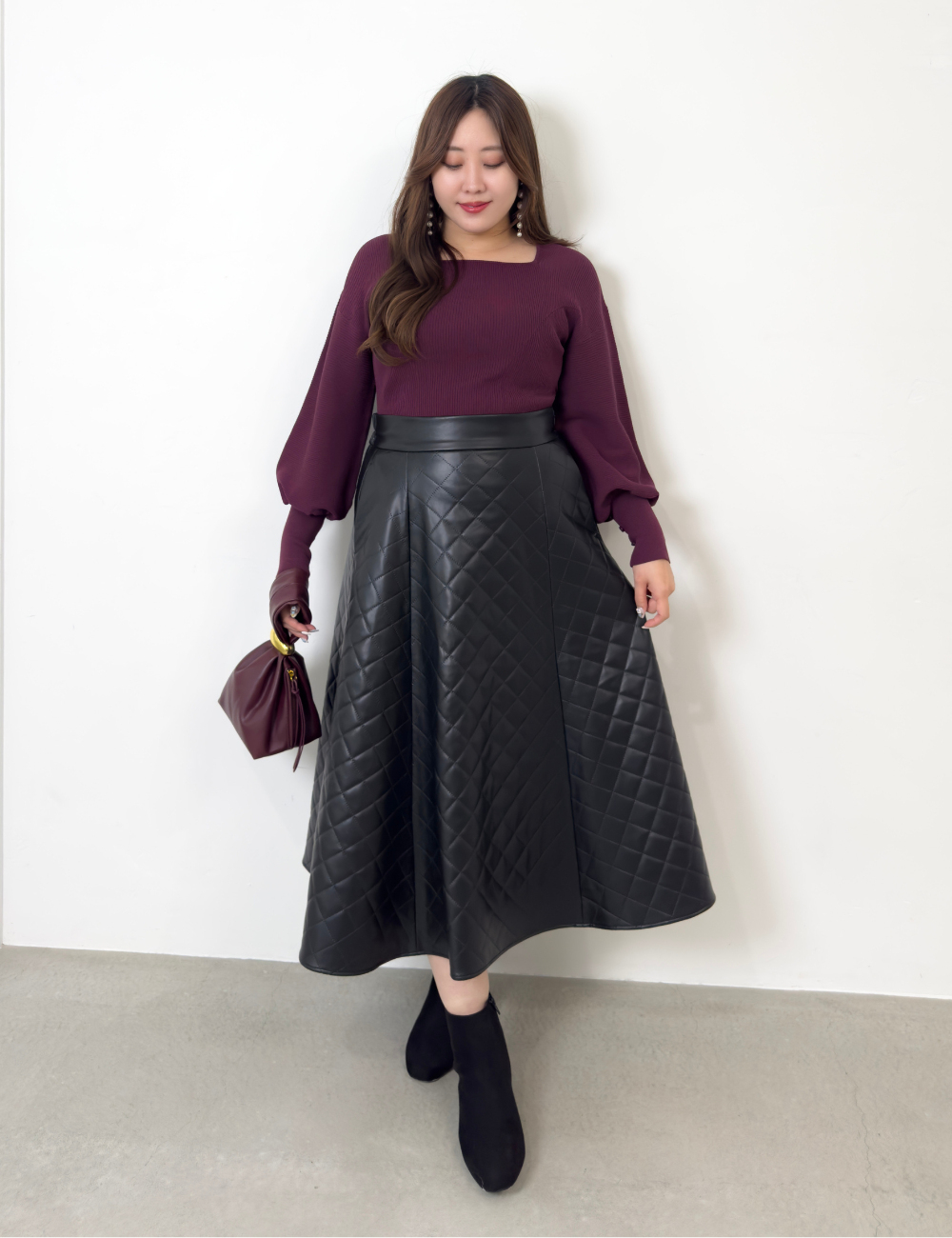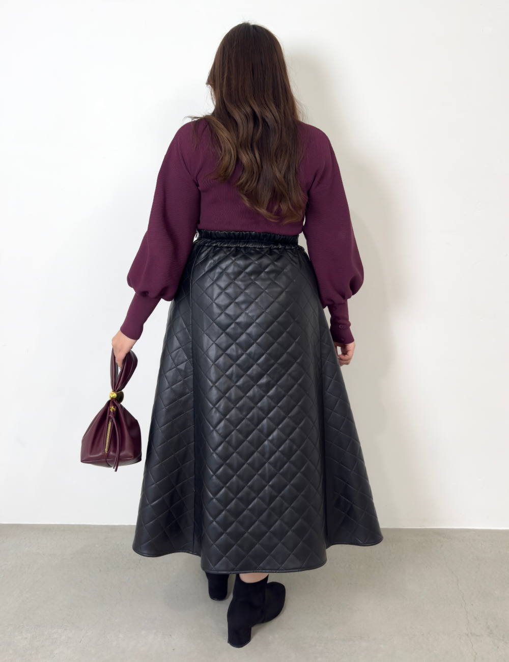 この秋冬、主役にしたいフェイクレザーキルティングスカート。