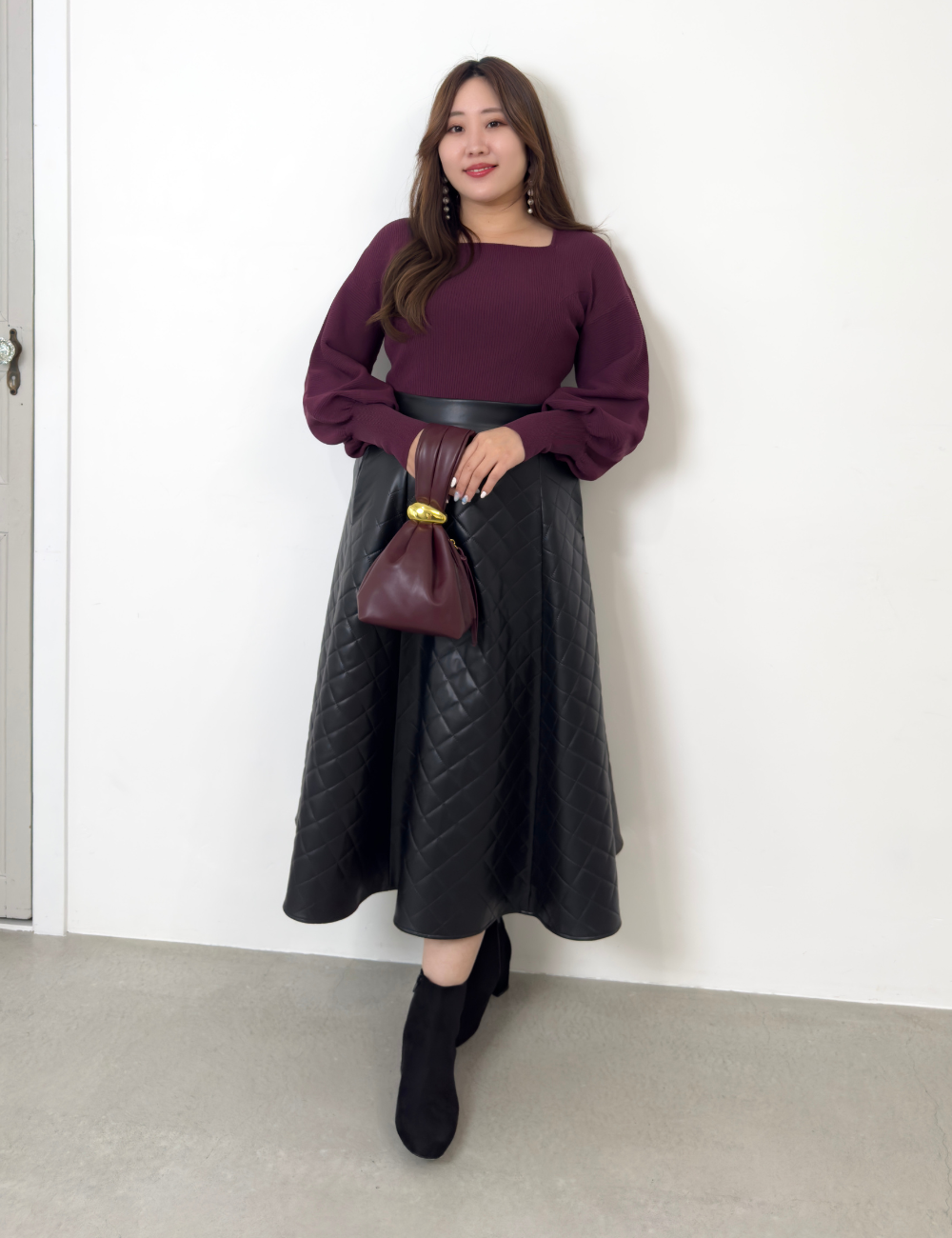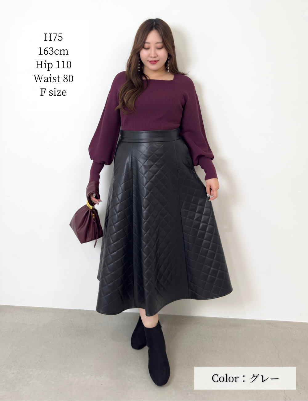 立体感のあるキルティングがほどよい存在感を放ち、甘くなりすぎない“大人のAライン”を叶えます。