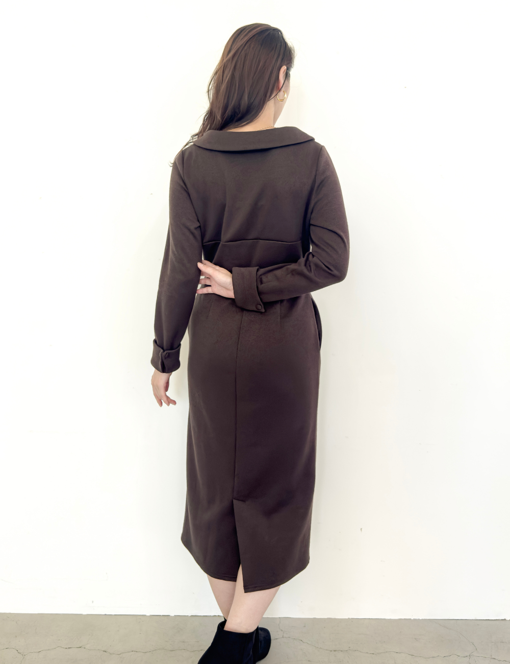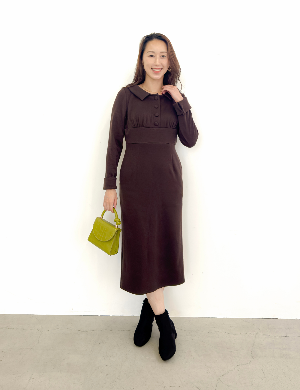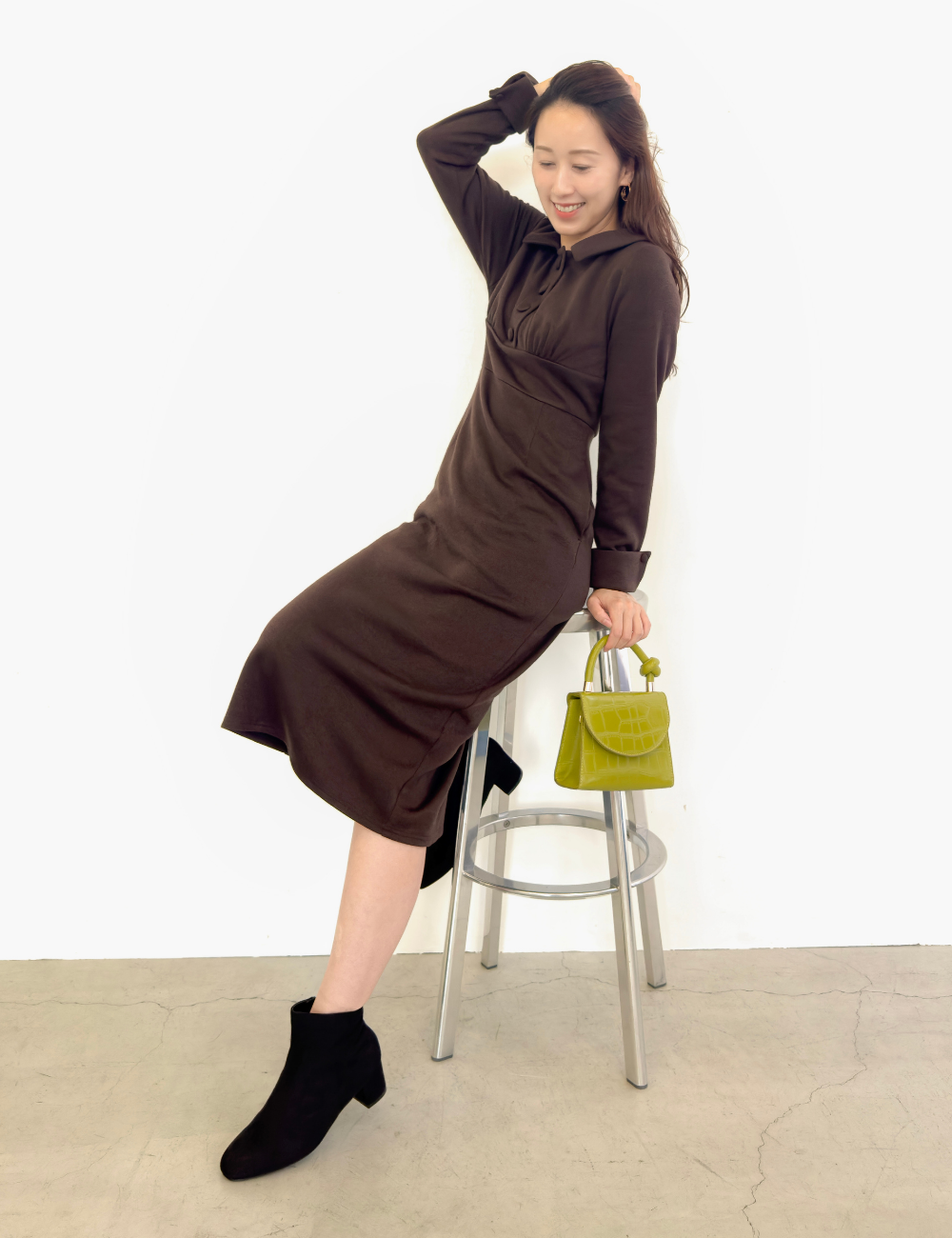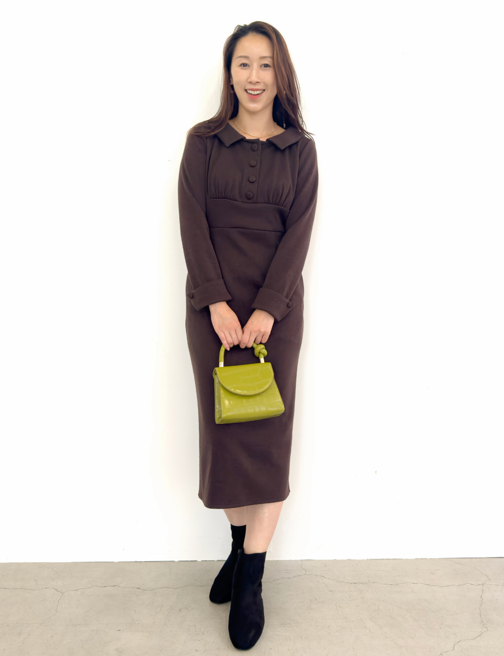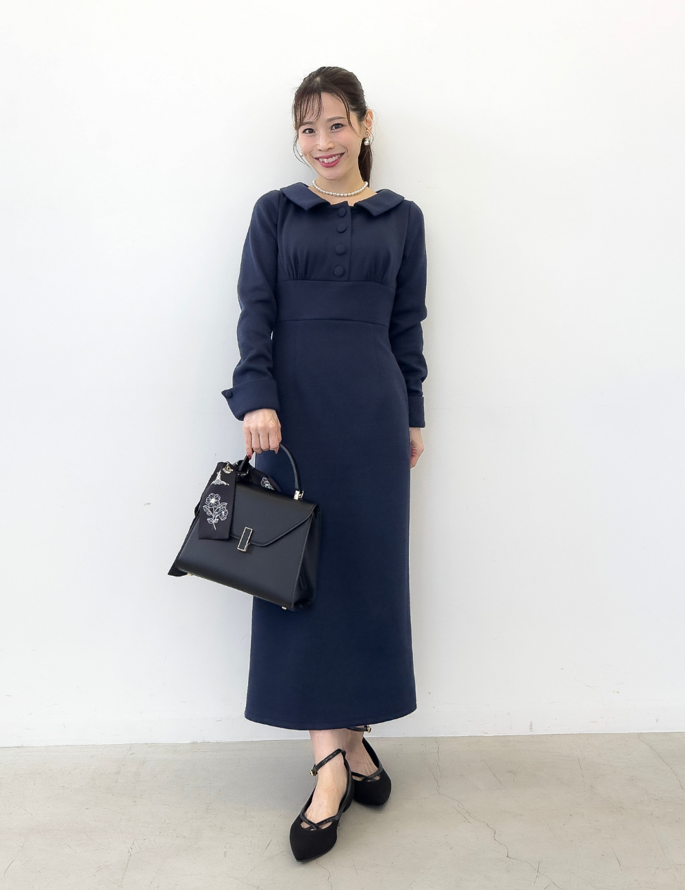 秋冬らしい落ち感のある素材でクラシカルな雰囲気に仕上げました。生地に厚みをある程度持たせることで、下着のラインも気になりにくい。