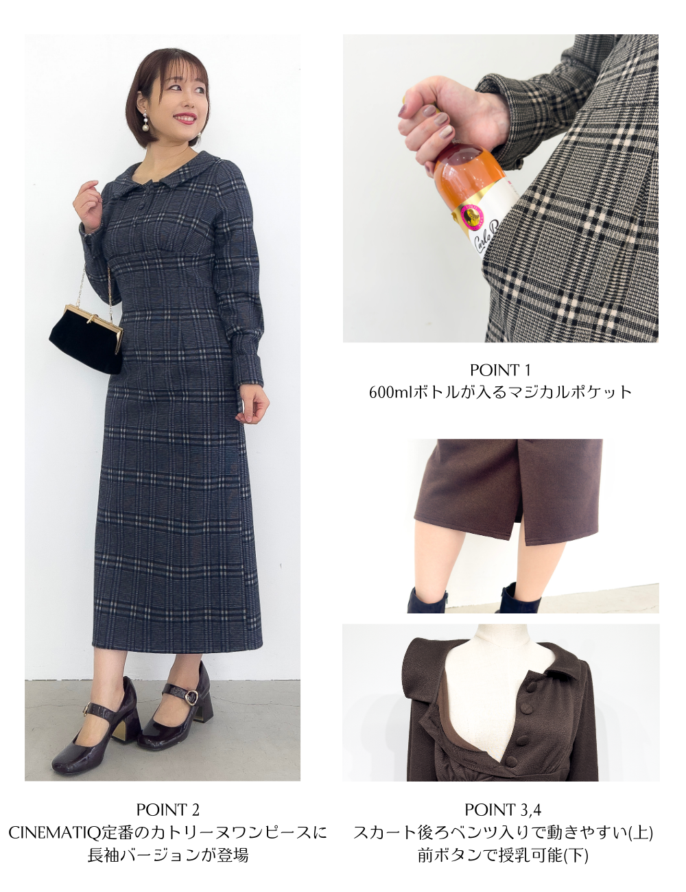 CINEMATIQ定番のヴィンテージスタイルのカトリーヌワンピースに、待望の長袖バージョンが登場。