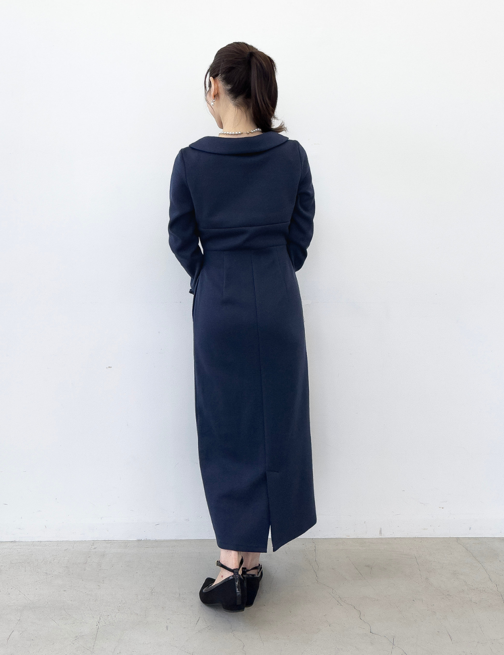 後ろ中心にはスリットの中でも脚の見え方が控え目なベンツスリットを入れ、足さばきも快適です。
