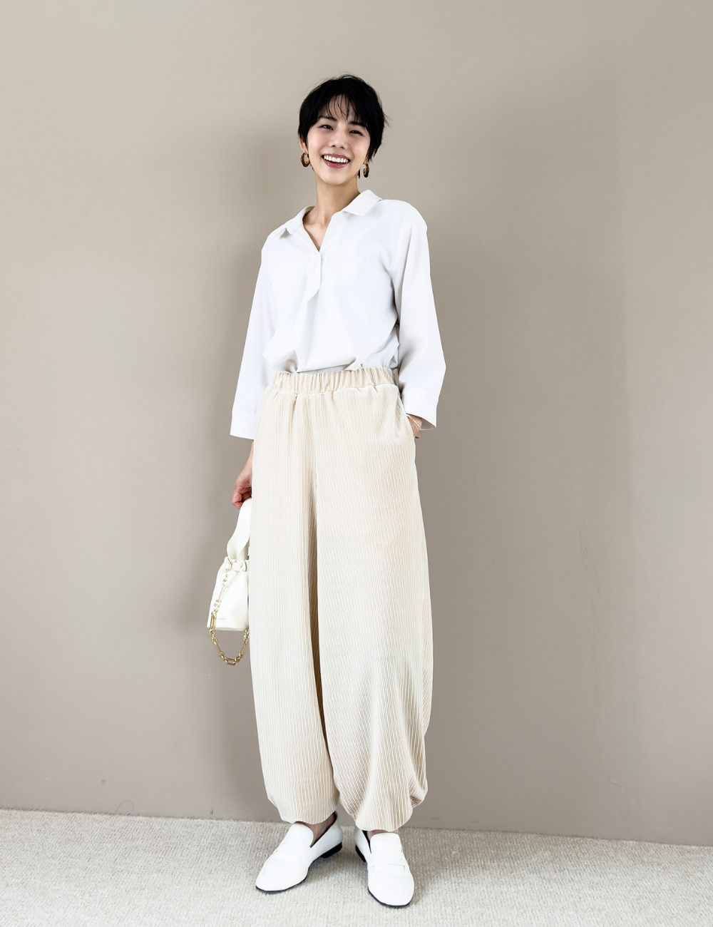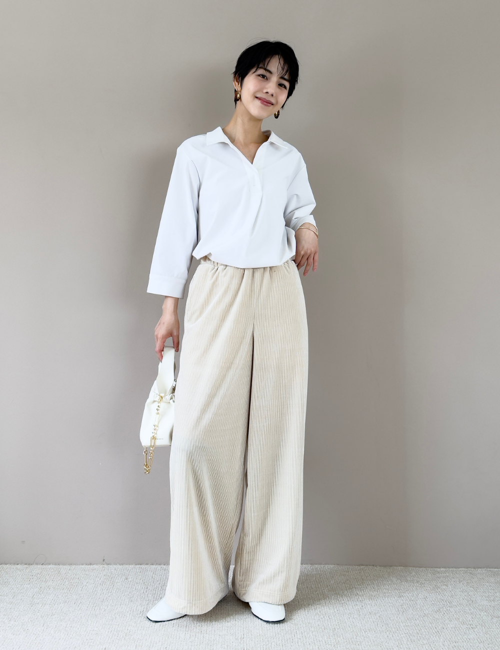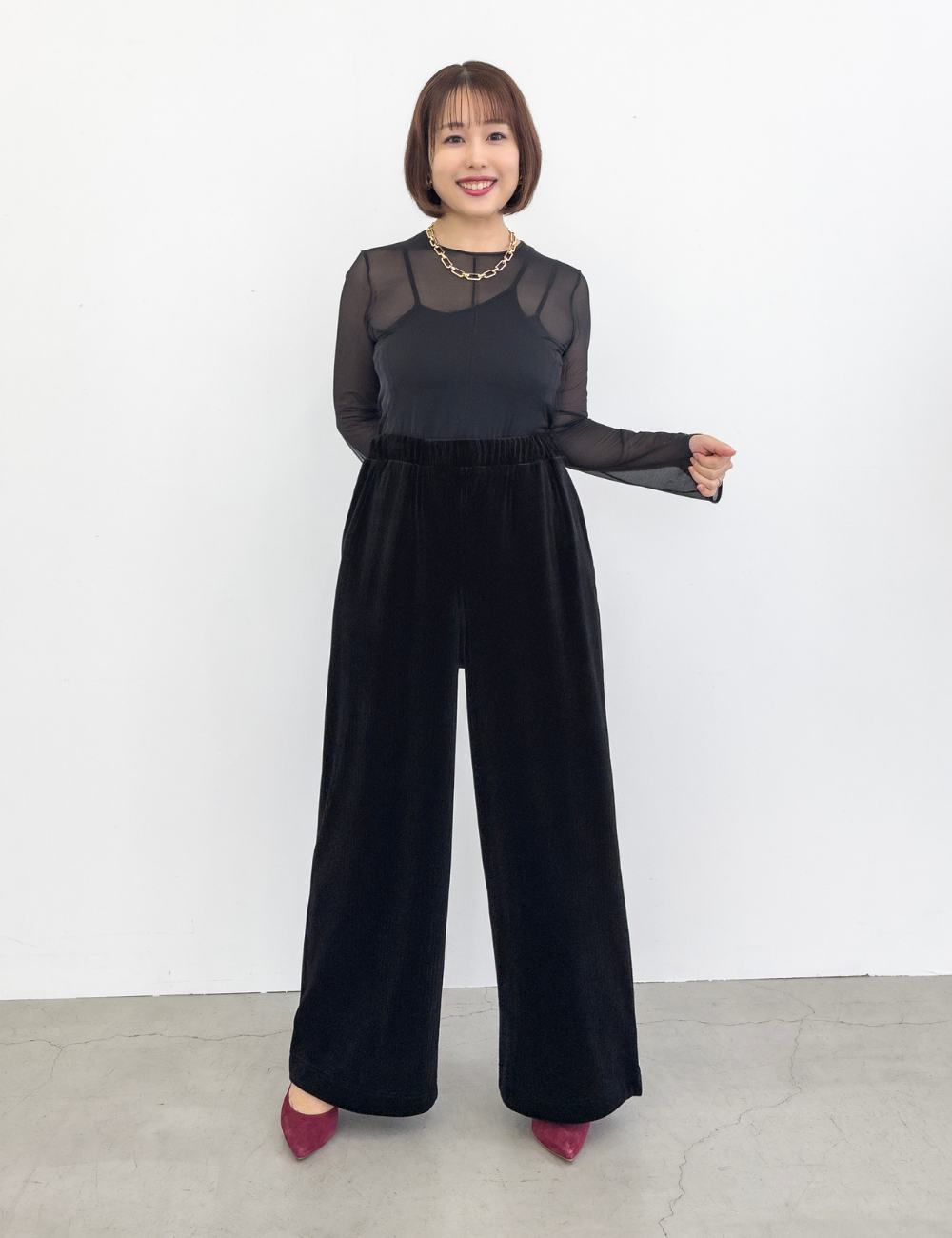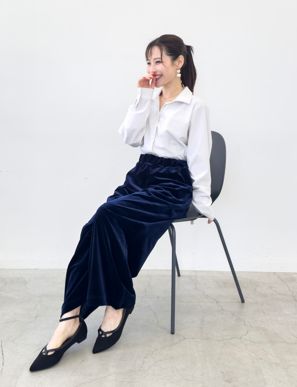 縦のラインが強調されることで脚長効果が生まれ、スタイルアップを叶えてくれます。