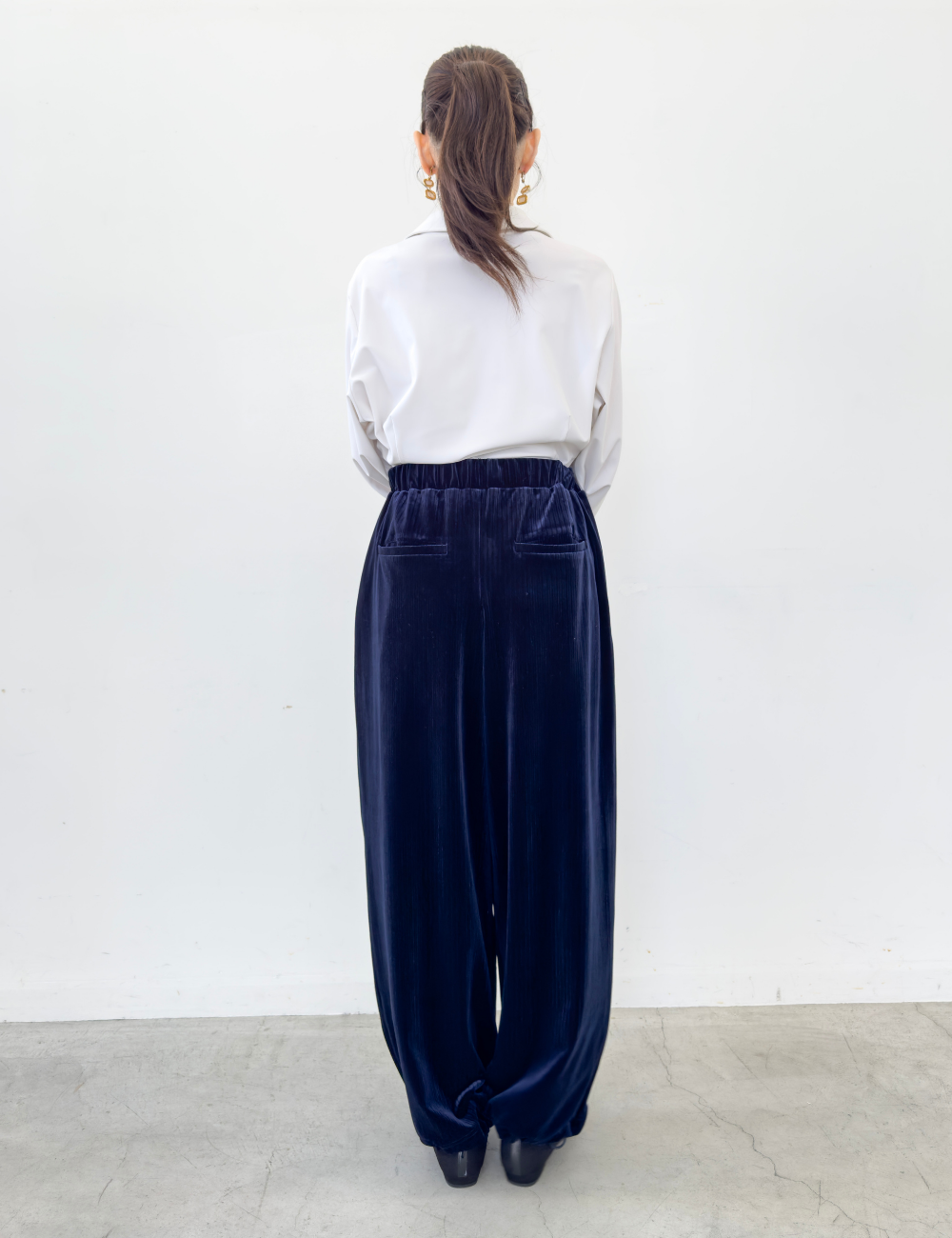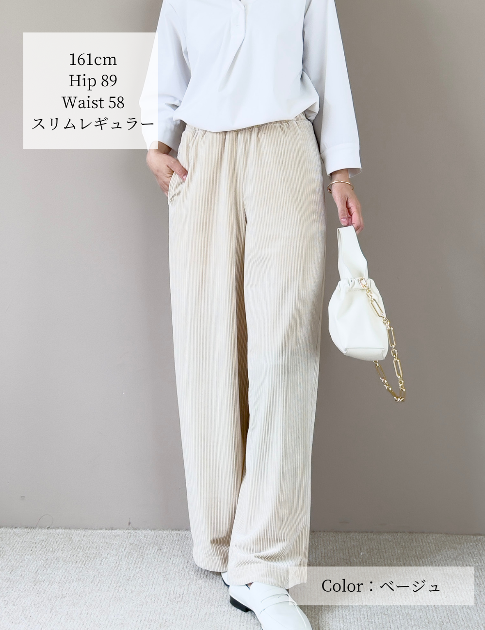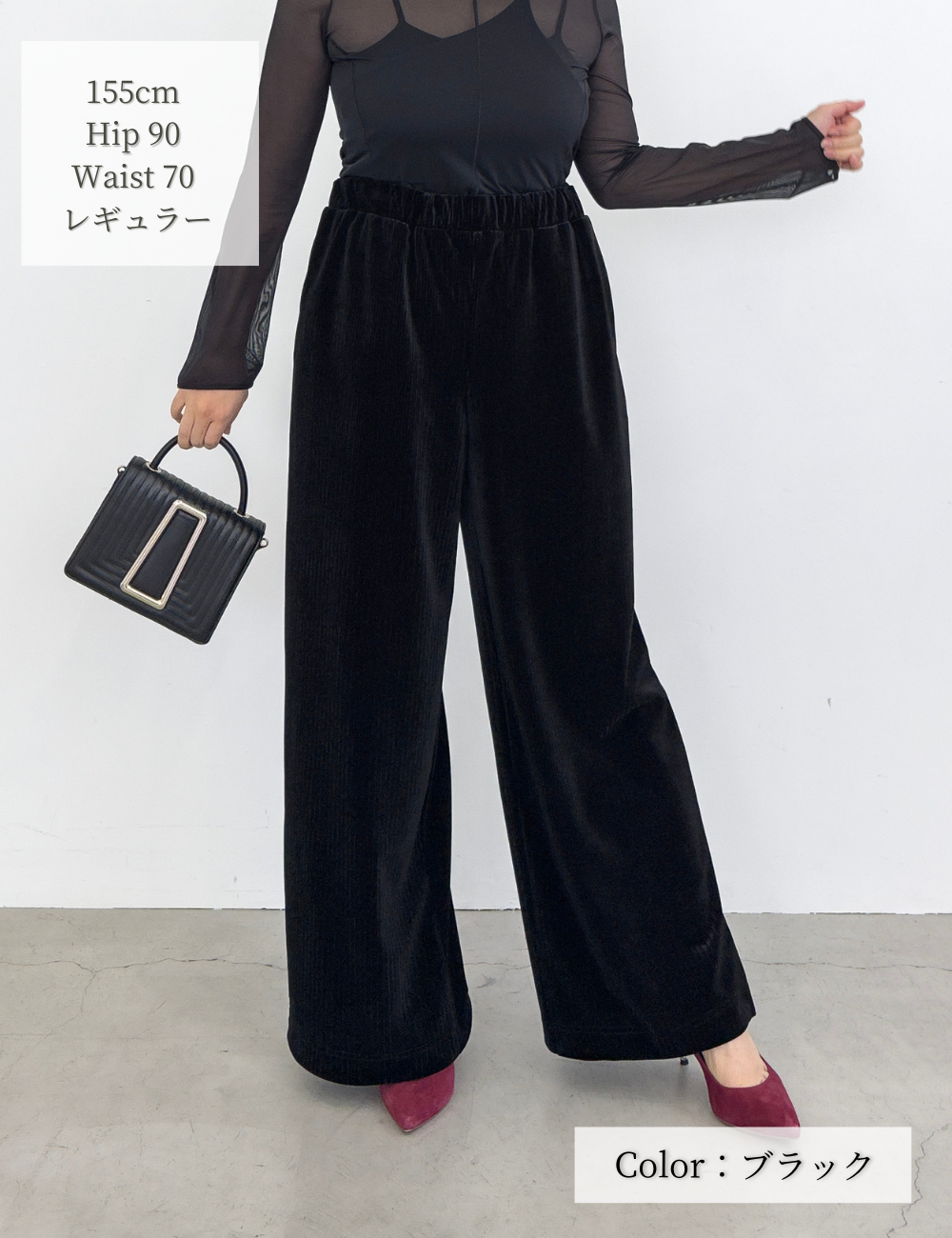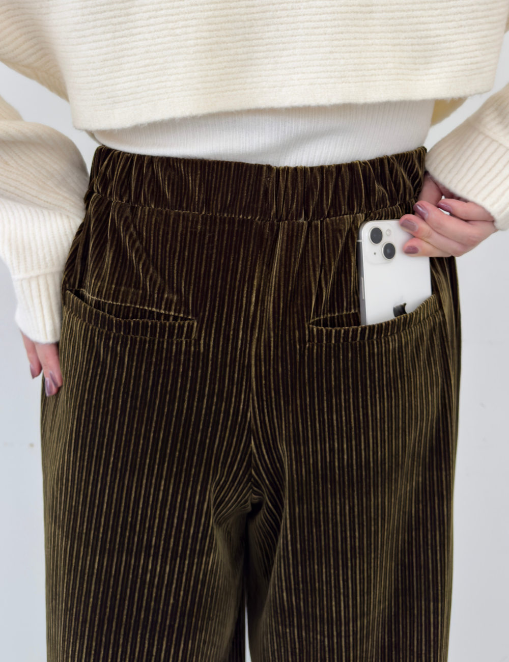 ギラギラしすぎない落ち着いた光沢感のあるベロア生地に、すっきりとした縦畝(たてうね)模様を施した高品質素材を使用。