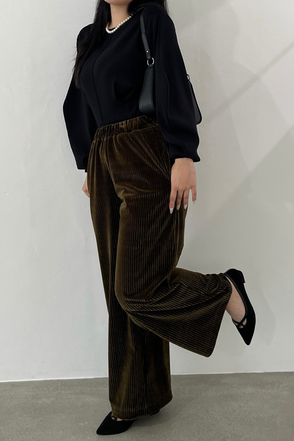 縦のラインが強調されることで脚長効果が生まれ、スタイルアップを叶えてくれます。
