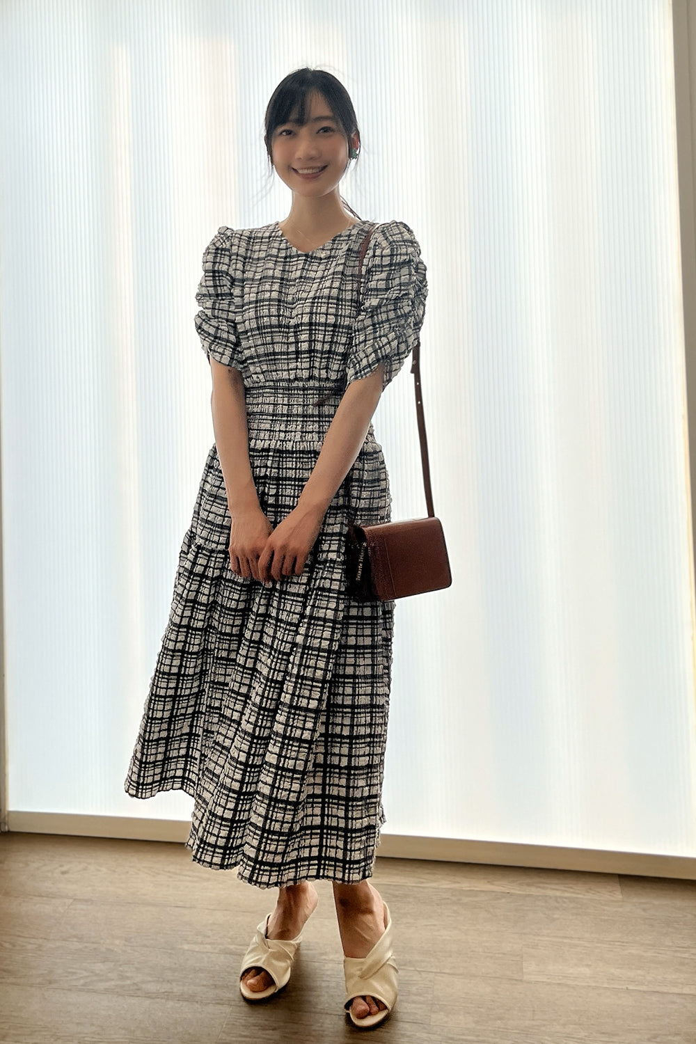 夏でもチェックが着たい!というチェック好きさんにおすすめです💓 肩のボリュームを抑えた、ボリュームスリーブが着やすくて、 しゃり感のある生地でとっても涼しいです!