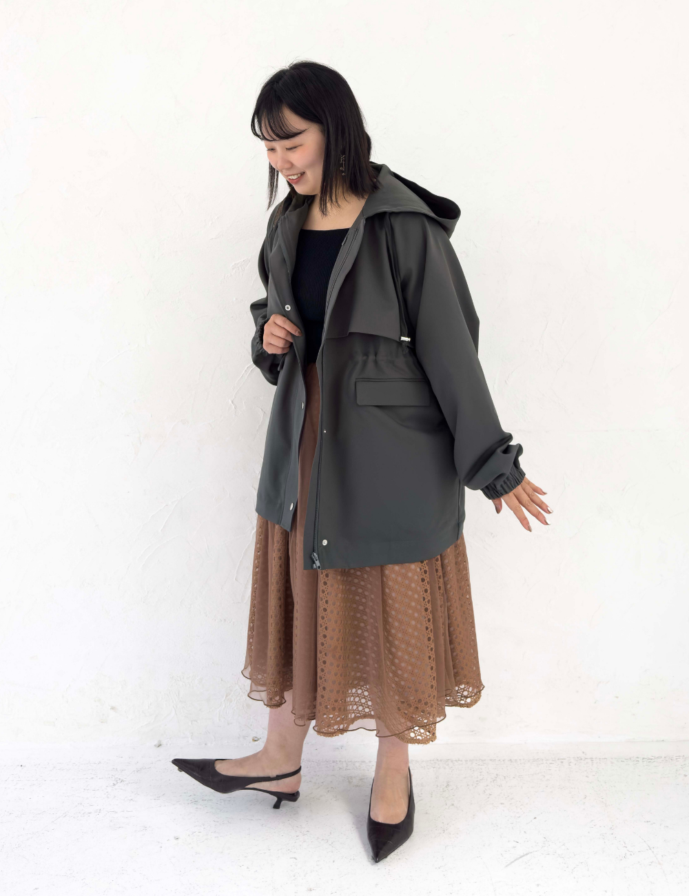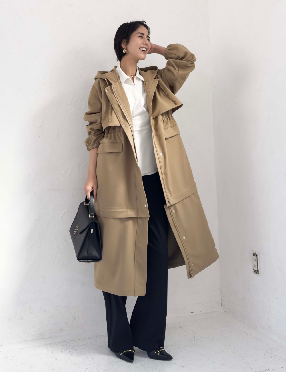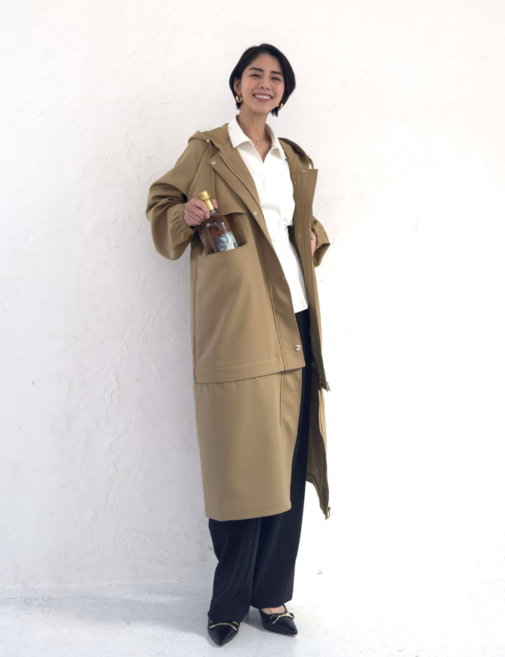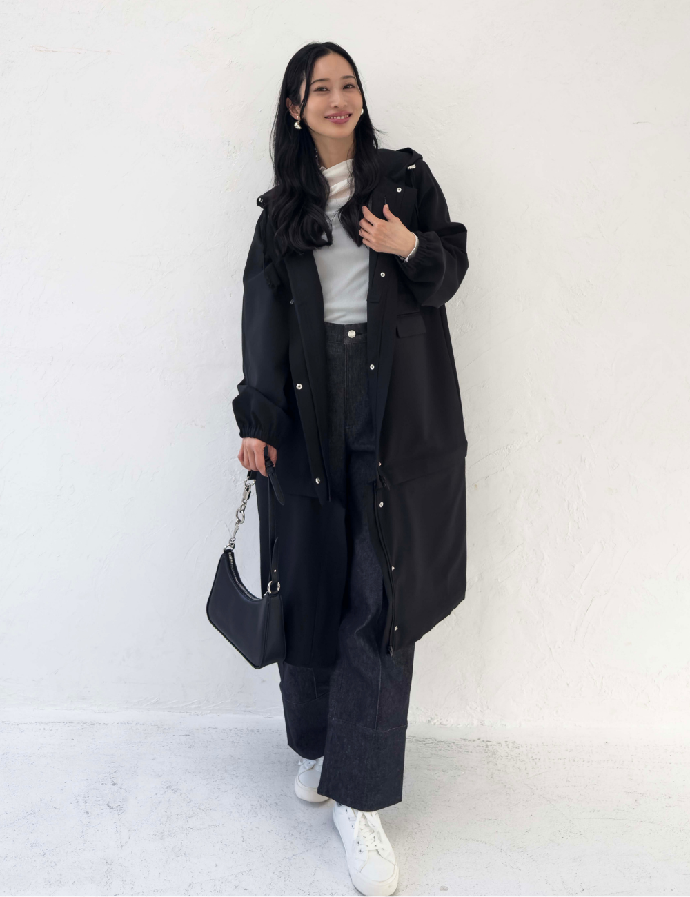 きれいめカジュアルで着られる、大人のためのレインコートデザインです。