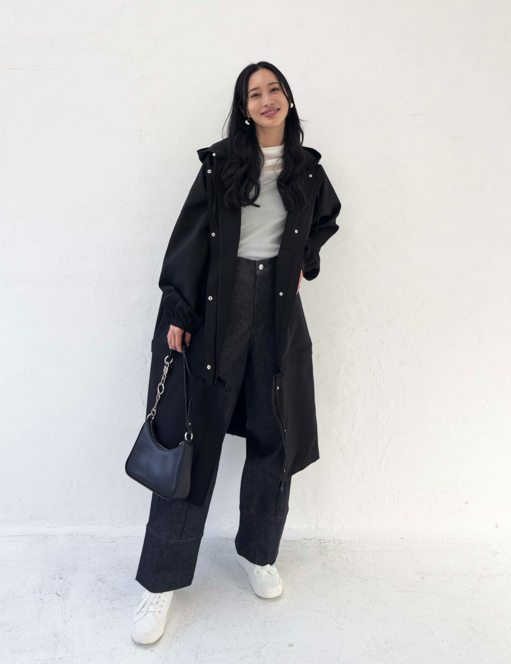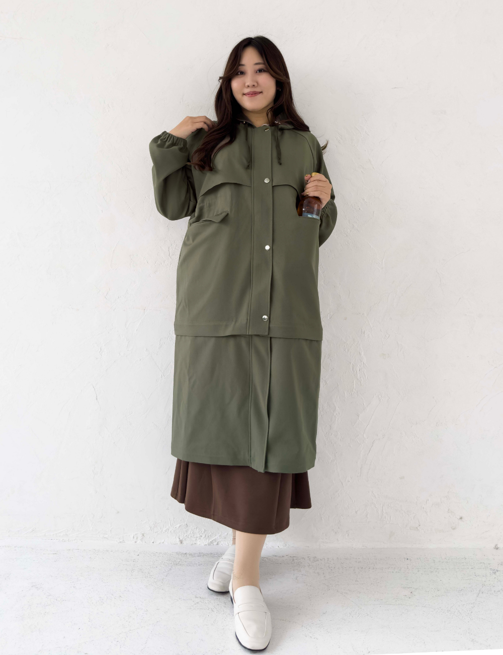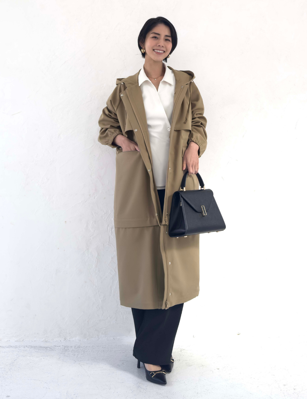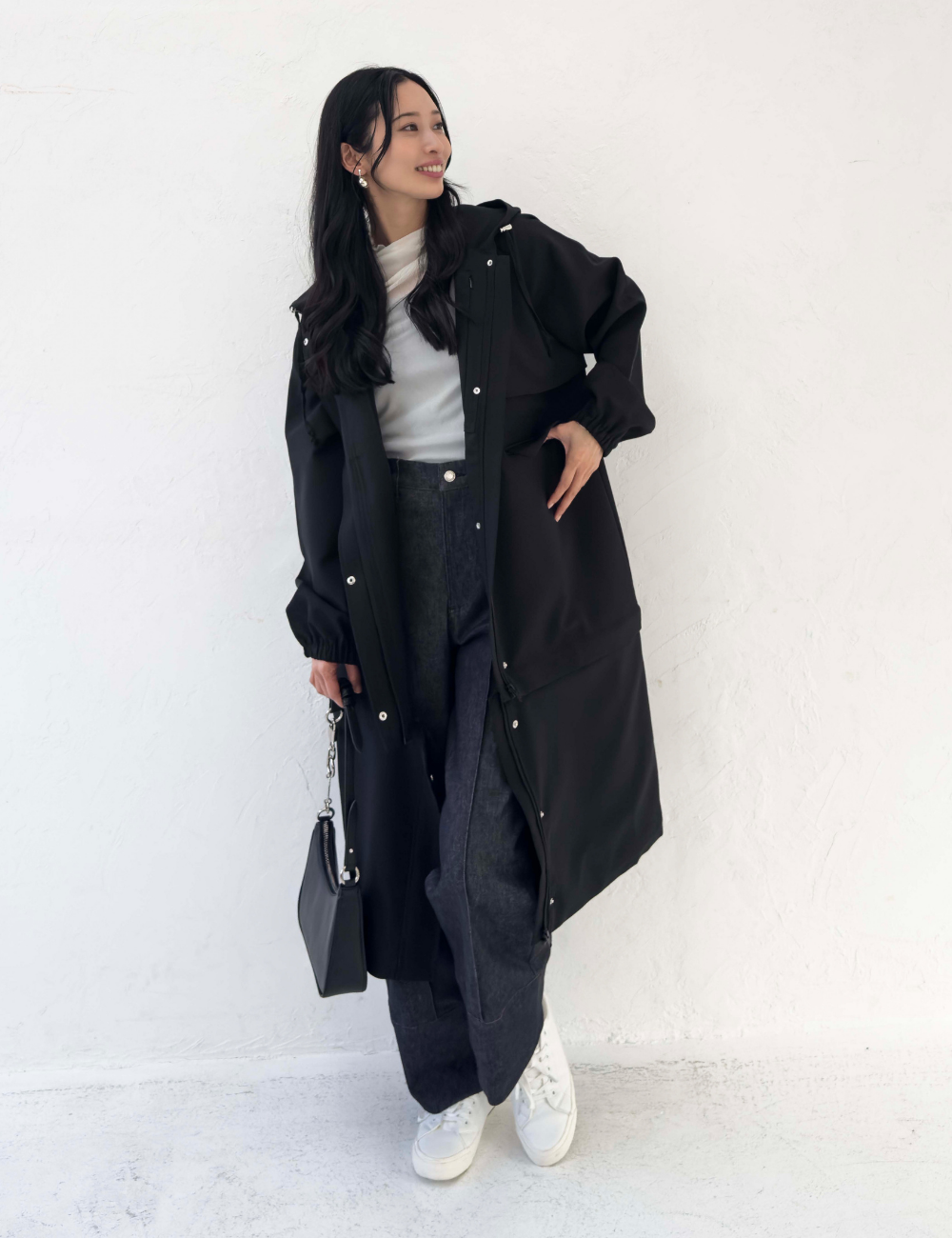 きれいめカジュアルで着られる、大人のためのレインコートデザインです。