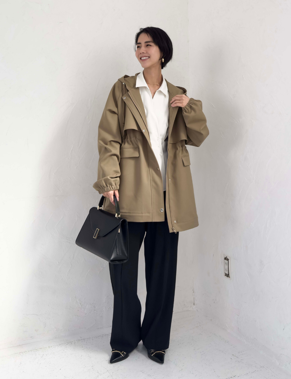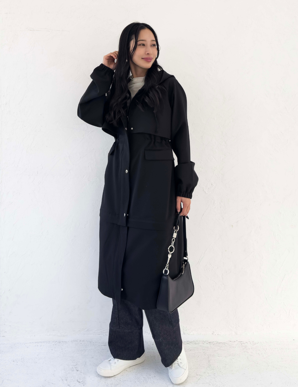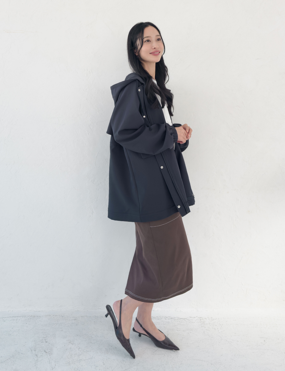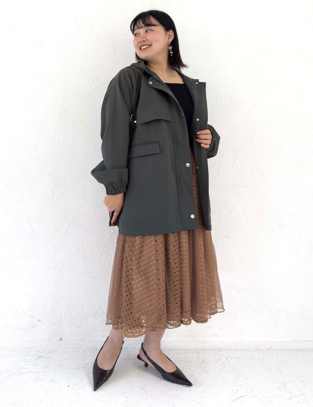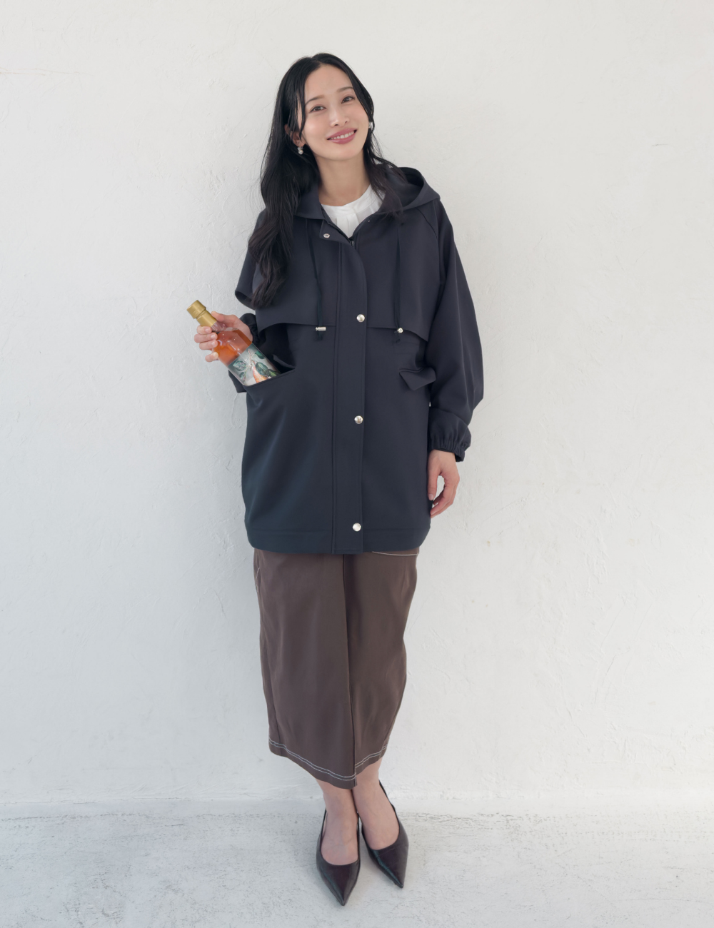 きれいめカジュアルで着られる、大人のためのレインコートデザインです。