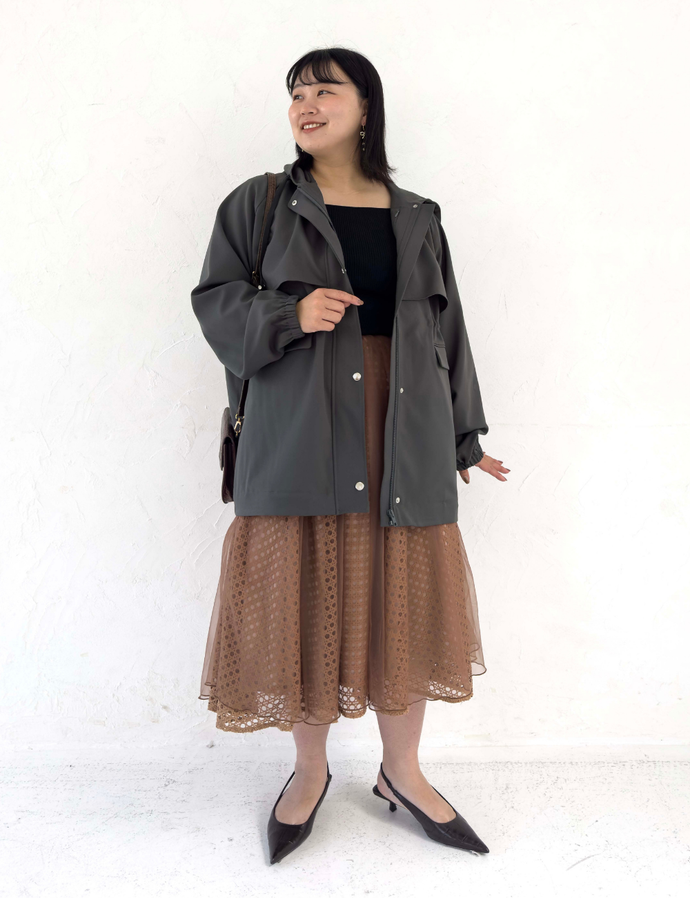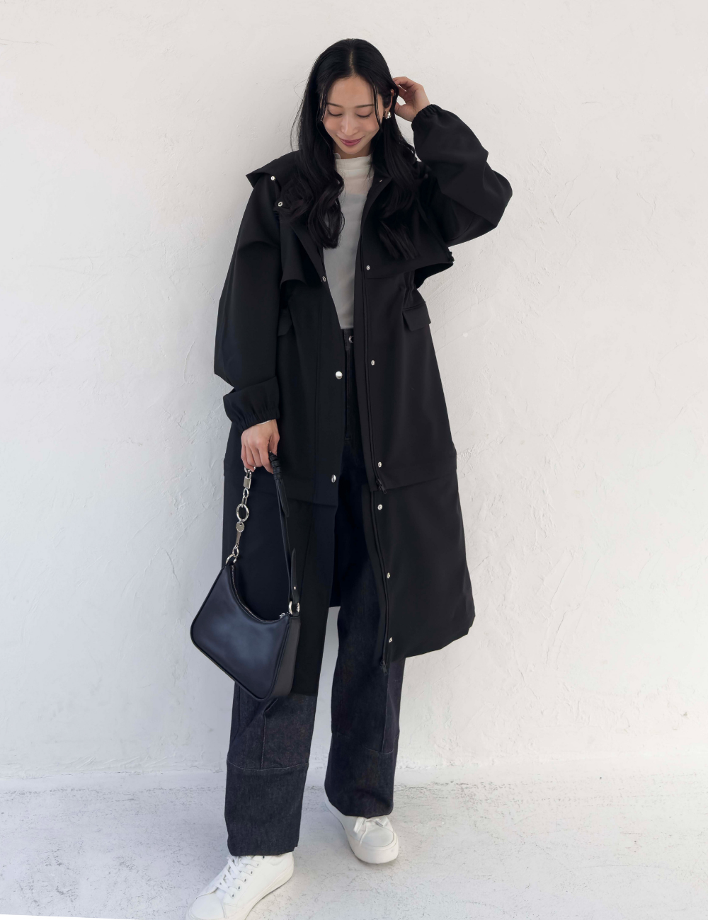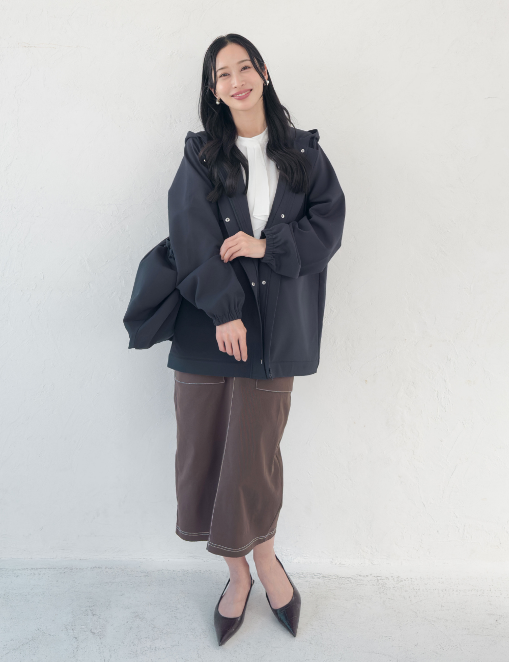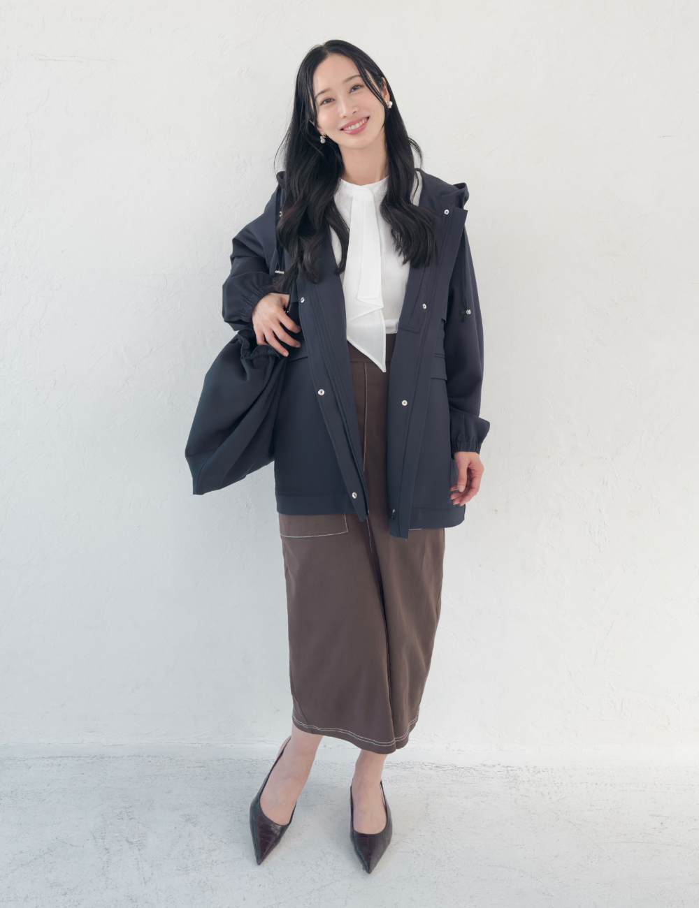 きれいめカジュアルで着られる、大人のためのレインコートデザインです。