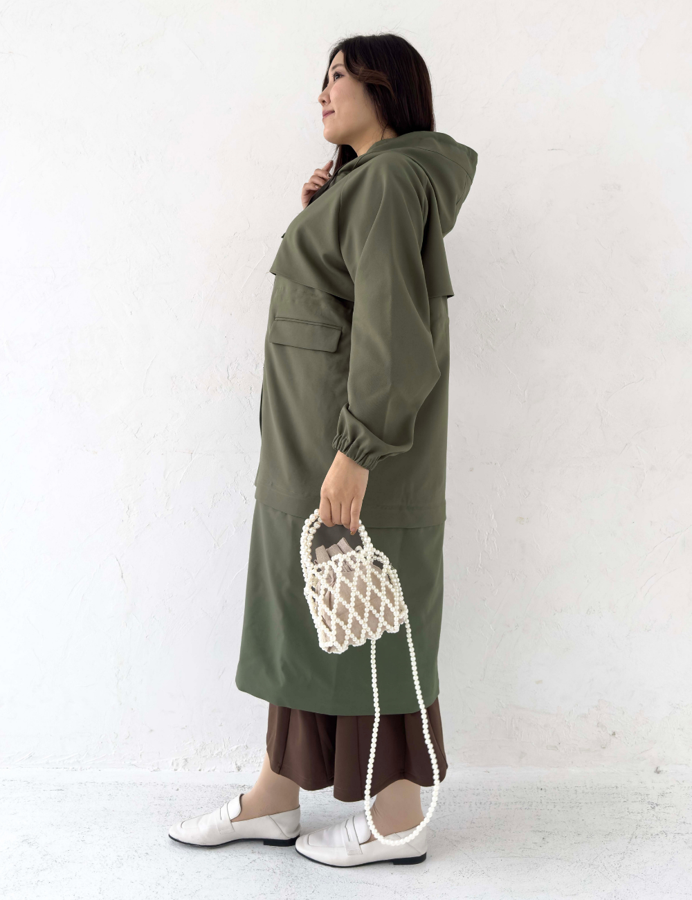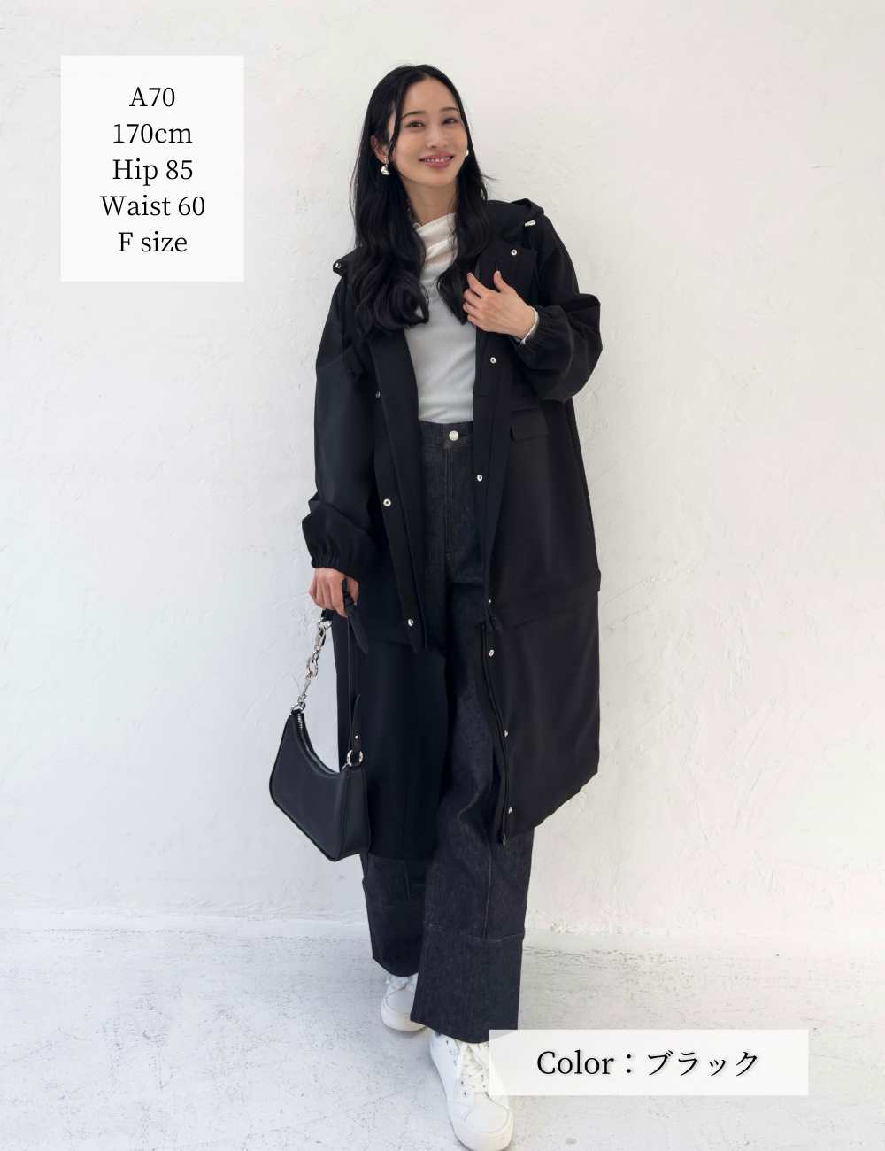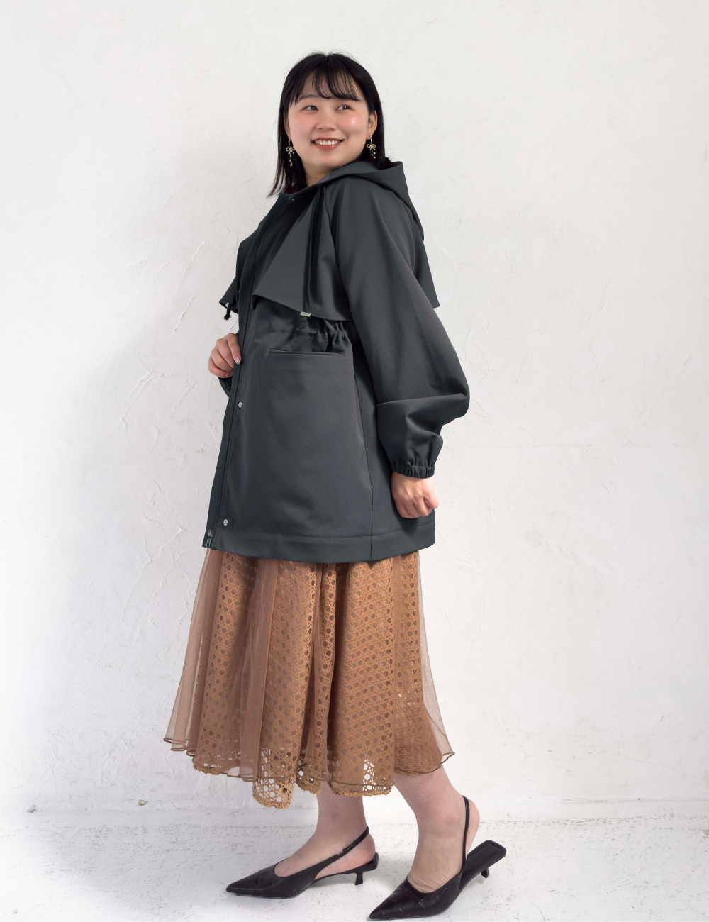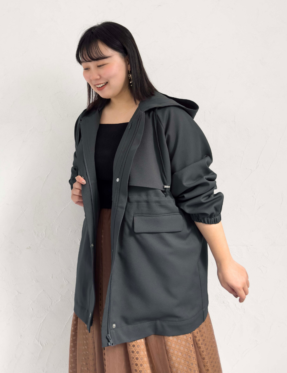 梅雨時期や突然の雨はもちろん、制電生地だから嫌な埃や花粉が付きにくい。季節を問わずアウターとしてデイリーにお使いいただけます。