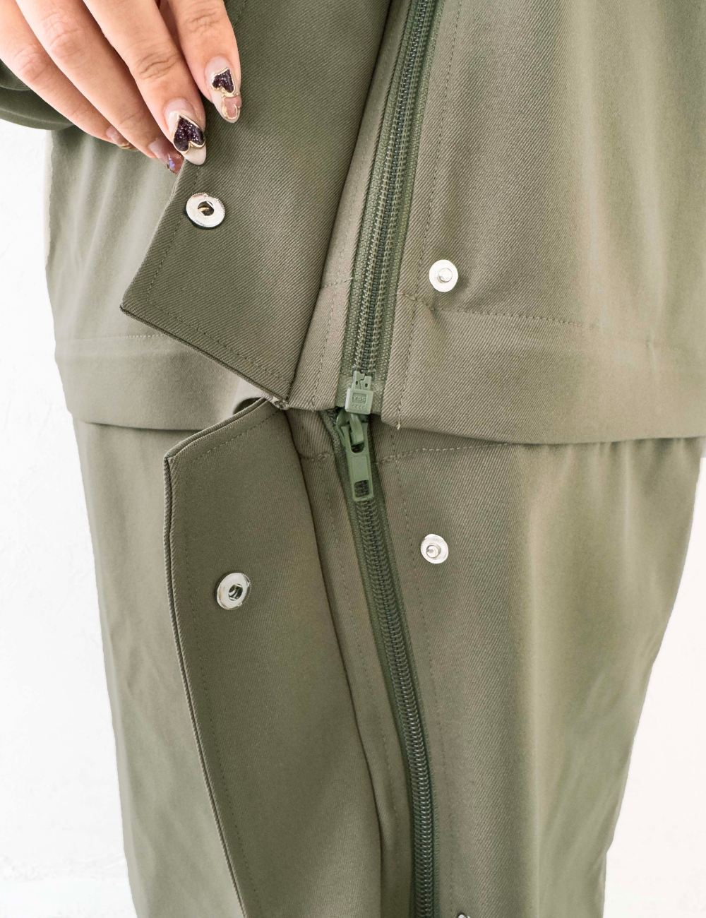 ストレッチ性もあるため動きやすく、快適な着心地が続きます。制電機能によりホコリが付きにくく、衣類のまとわりつきも軽減。