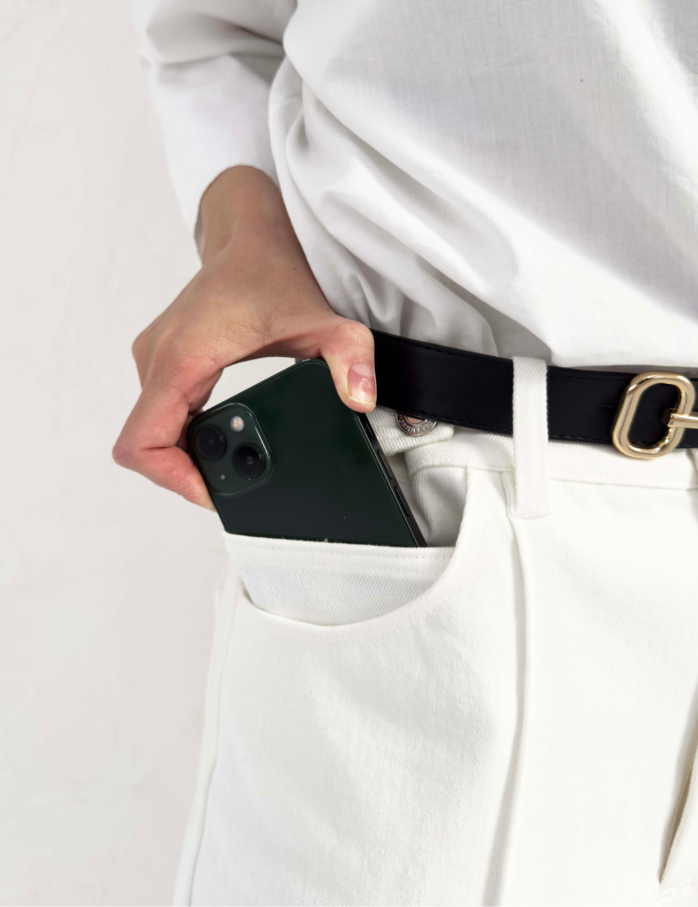 スマホや小物を入れてもシルエットを崩さず、デニムらしい見た目をキープします。
