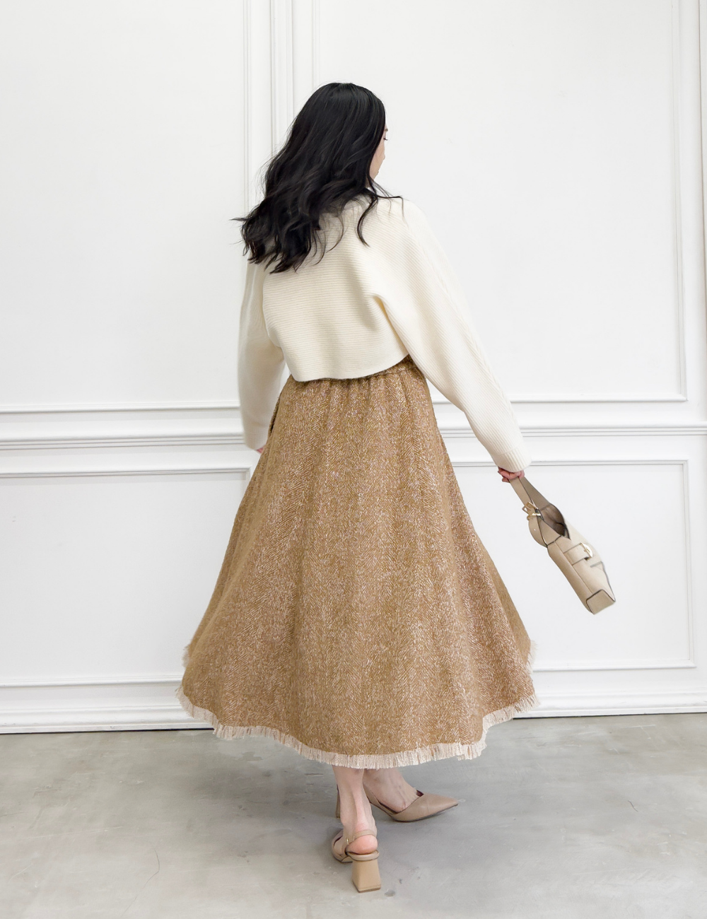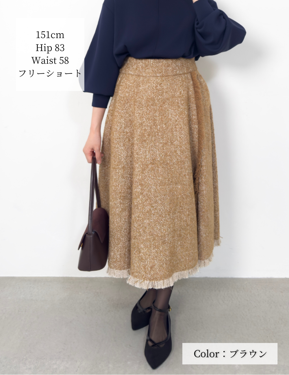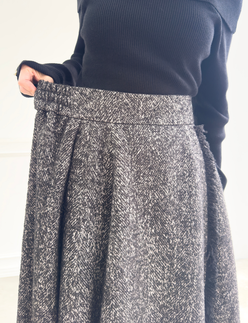 動くたびにふんわりと広がる上品なフレアシルエットです。