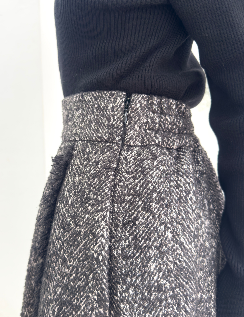 太番手の糸をざっくりと織り上げた生地は、立体感と程よいハリがあり、身体のラインを拾わず美しいAラインをキープ。