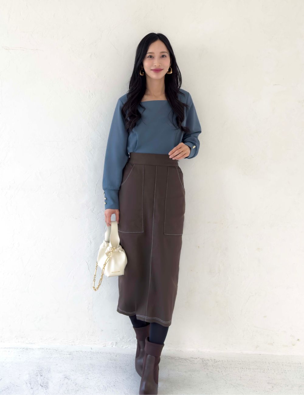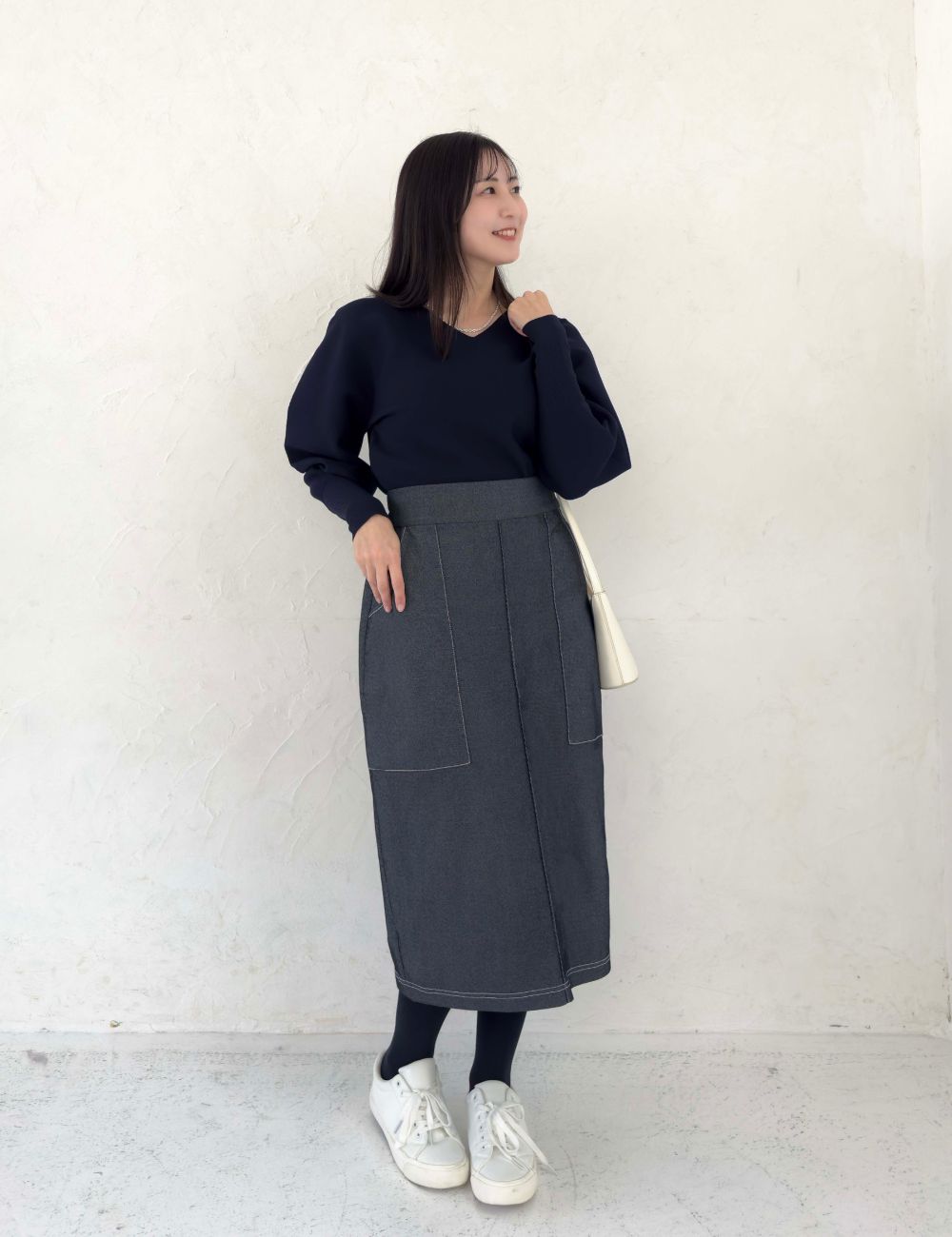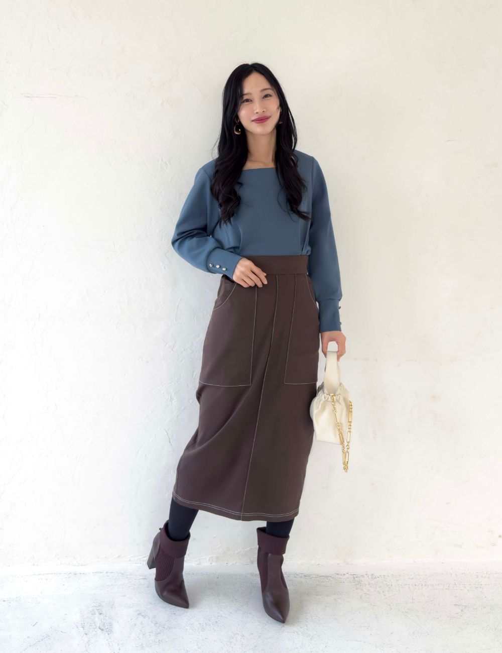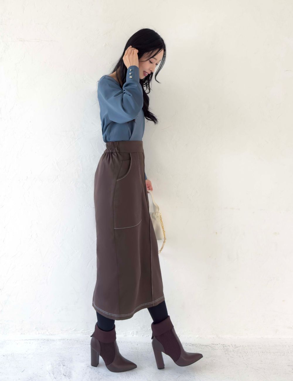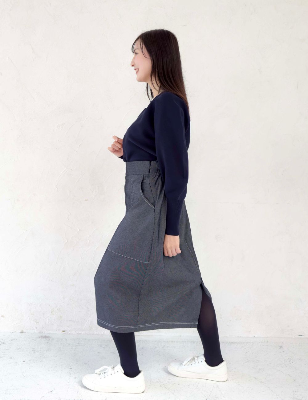 シンプルなトップスと合わせるだけで、きれいめカジュアルが完成するスカートです。