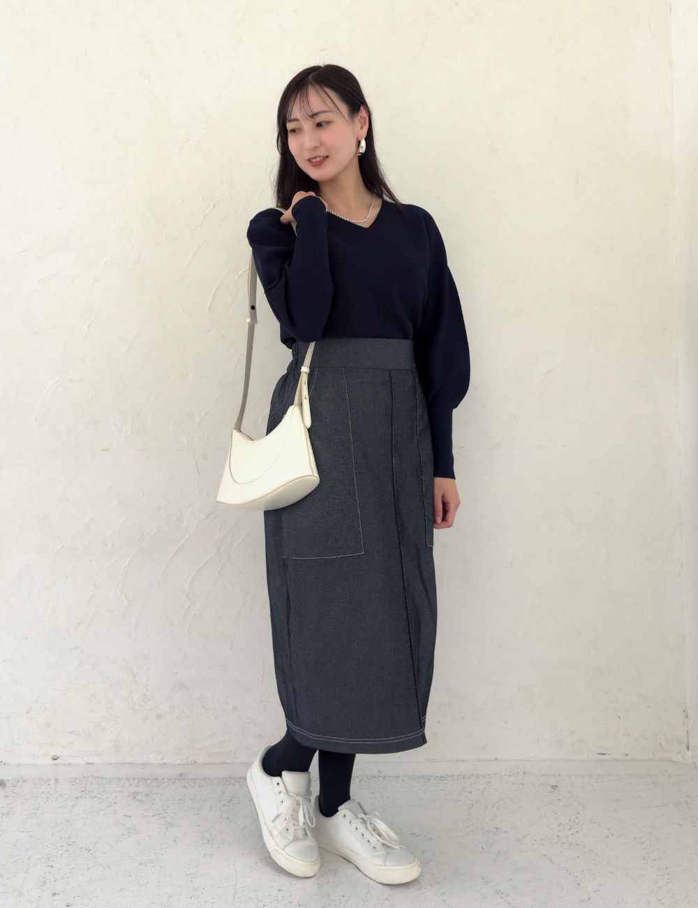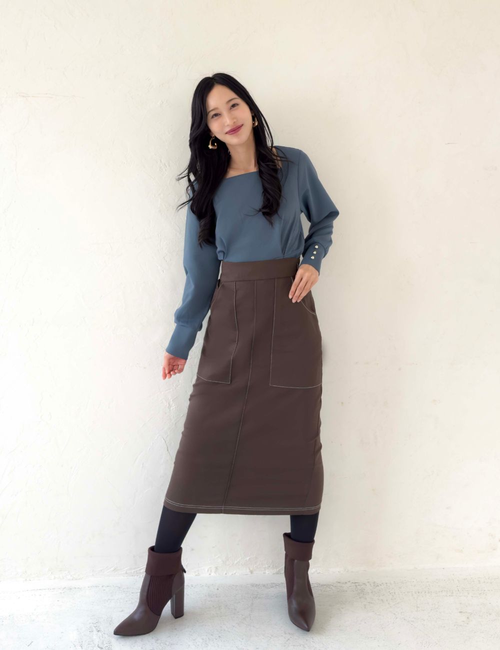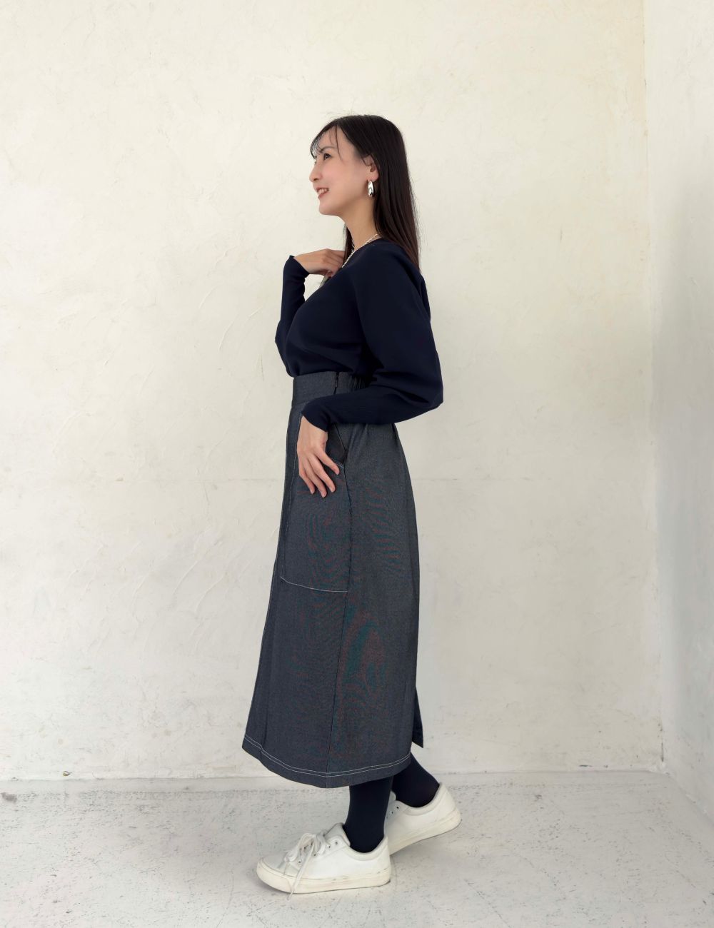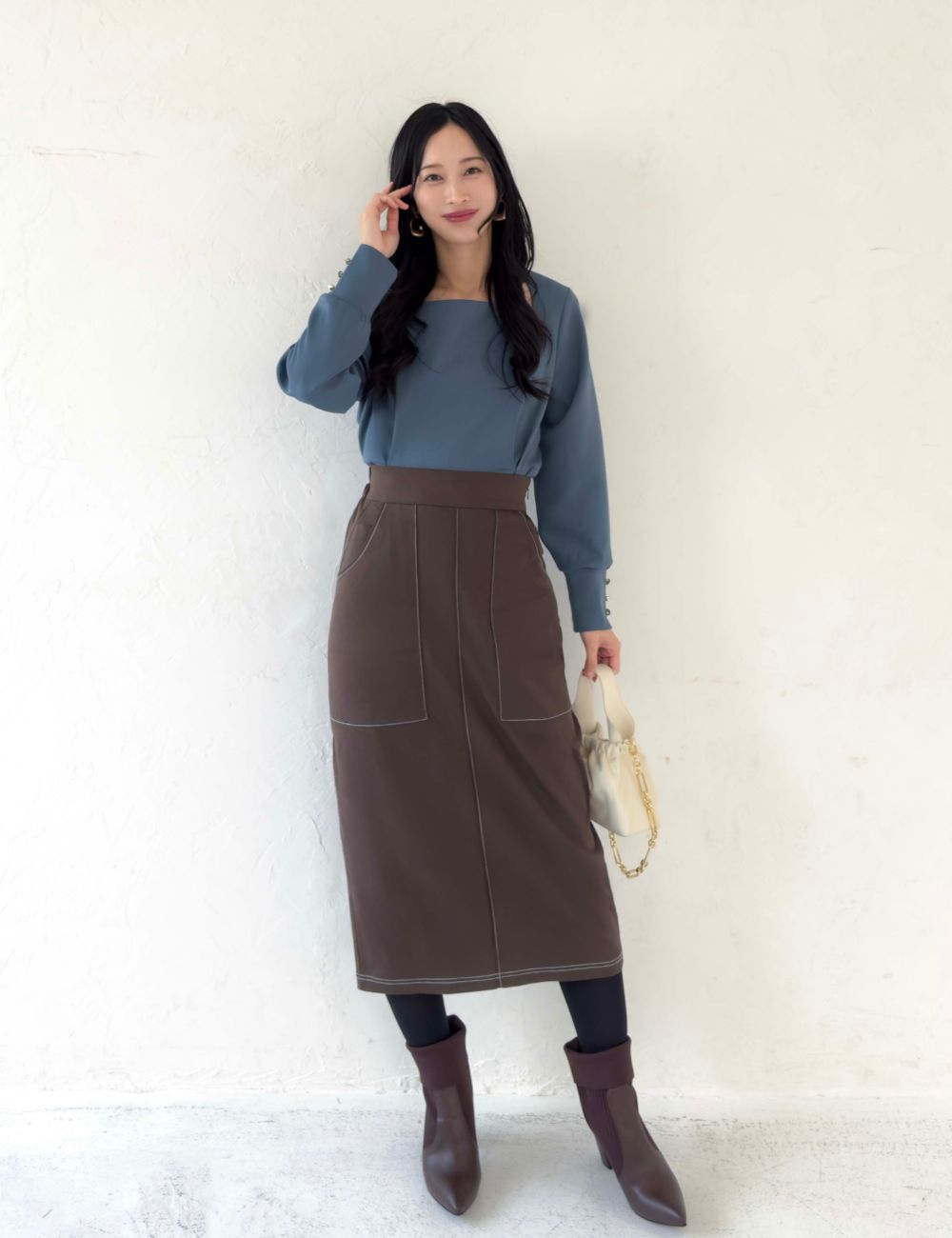 シンプルなトップスと合わせるだけで、きれいめカジュアルが完成するスカートです。