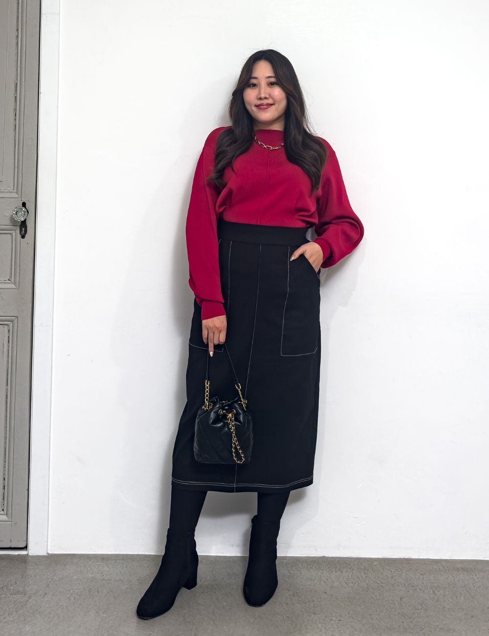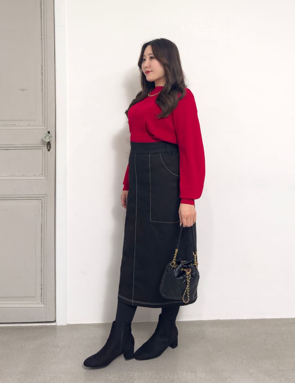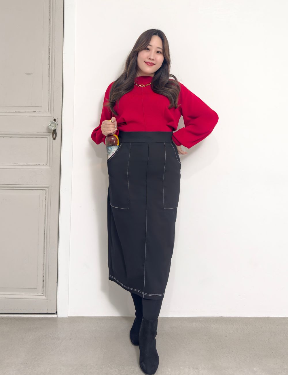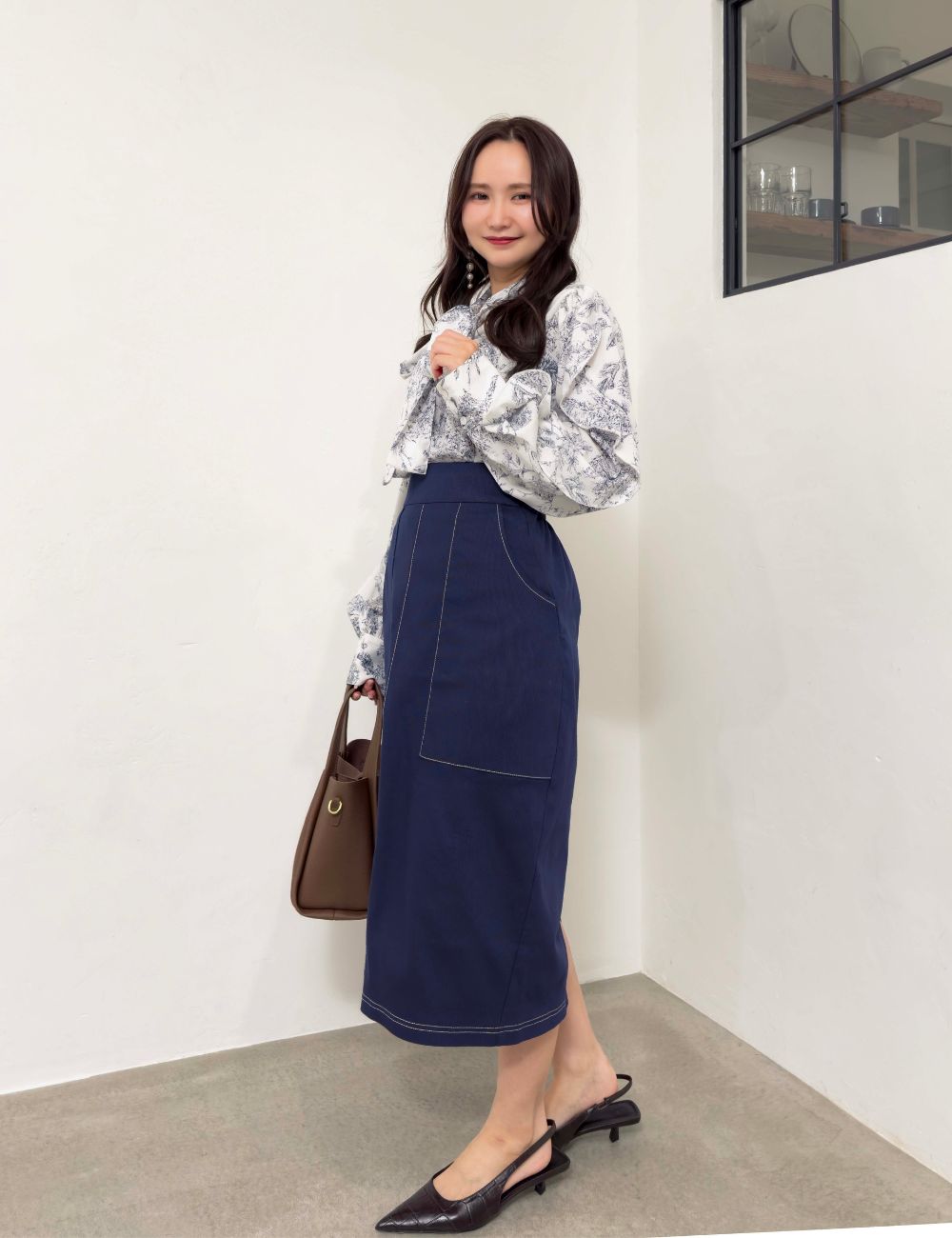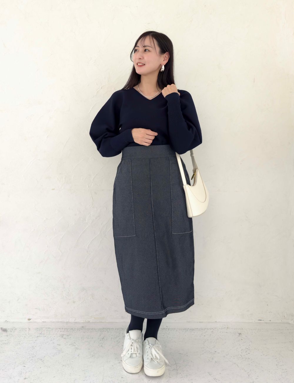 シンプルなトップスと合わせるだけで、きれいめカジュアルが完成するスカートです。