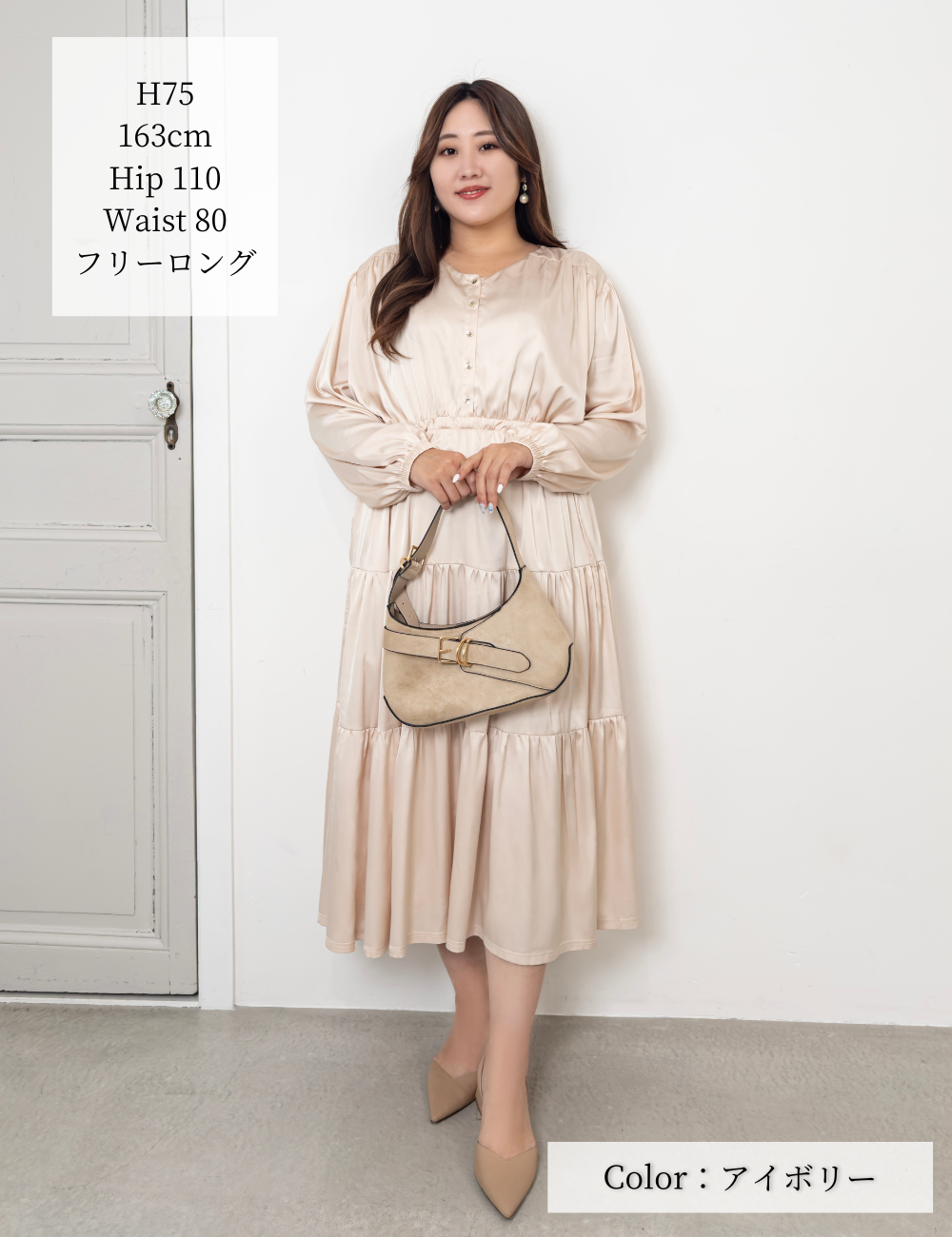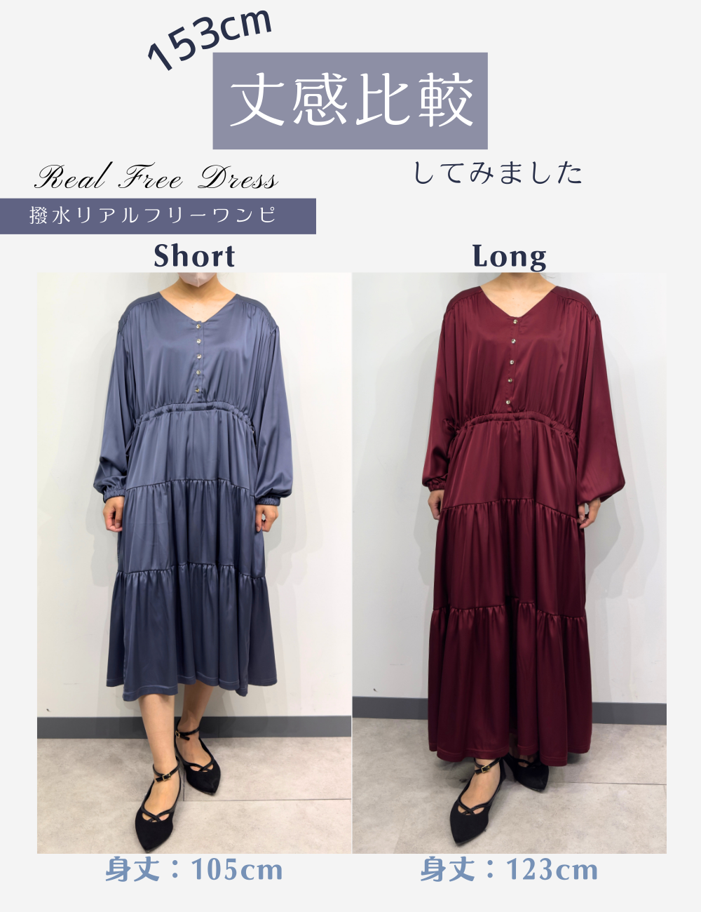 普通体型の方〜最大バスト150cm・ウエスト116cm・ヒップ136cmまでのプラスサイズの方まで素敵に着られると大好評のリアルフリーサイズシリーズ。
