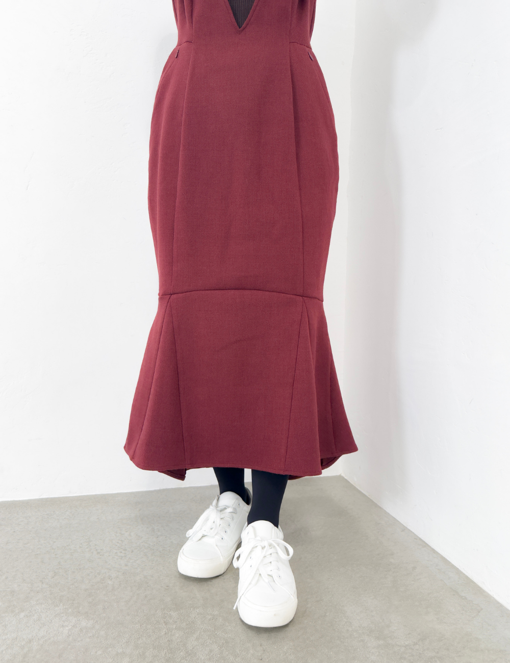 ヒップがぴちっとなりすぎないほどよいゆとりを持たせつつ、足さばきよく動けるマーメイドラインを追求しました。