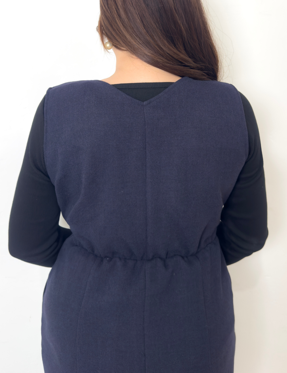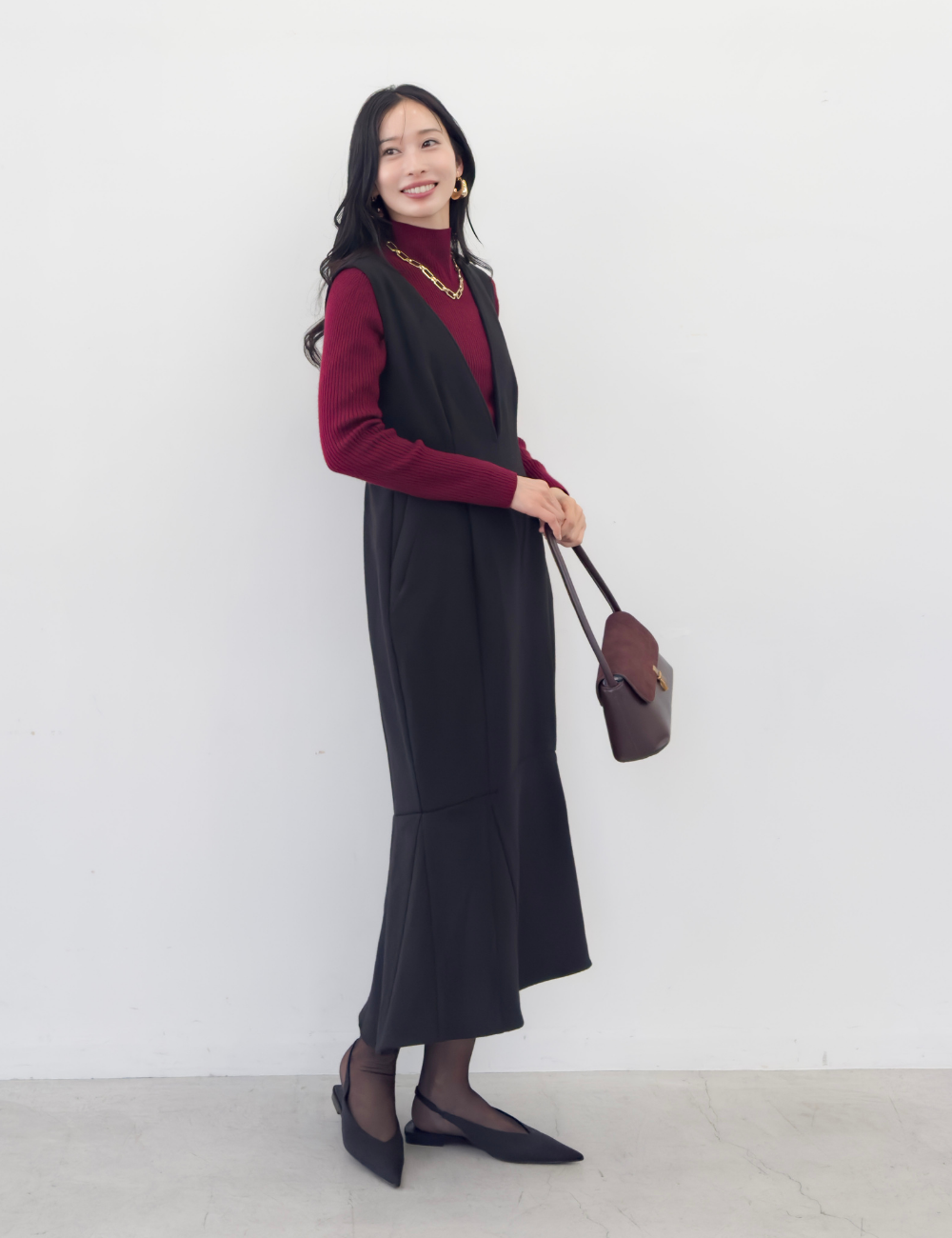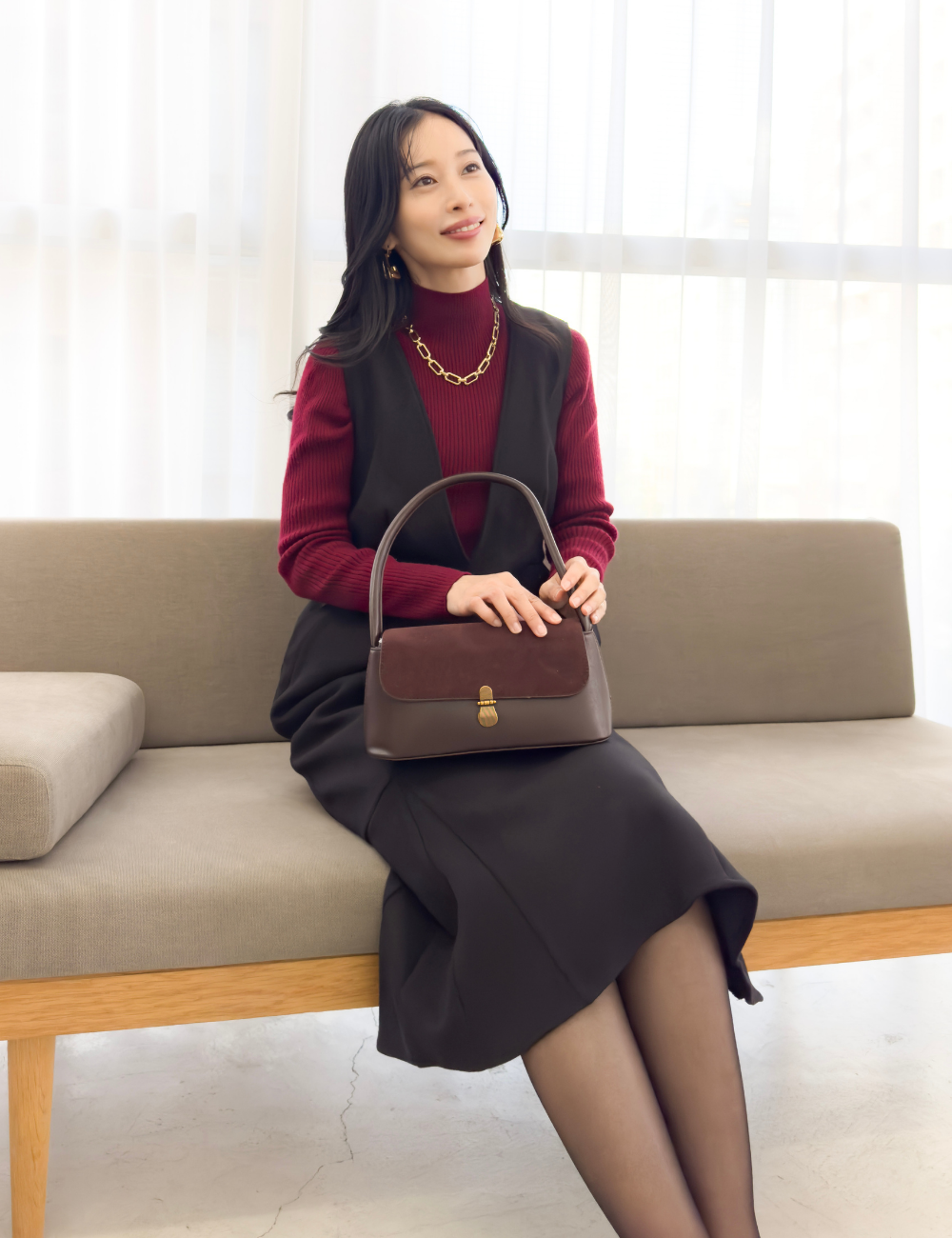 総裏地付きのため肌当たりが良く、透けを防ぎつつシルエットを美しく整えてくれます。