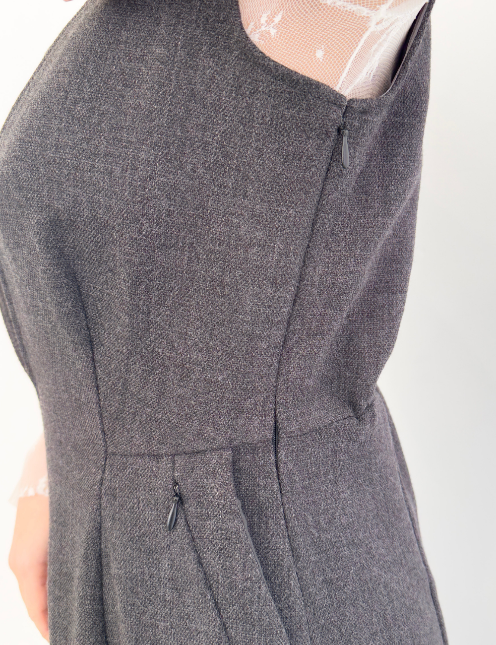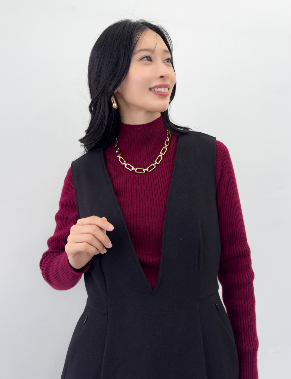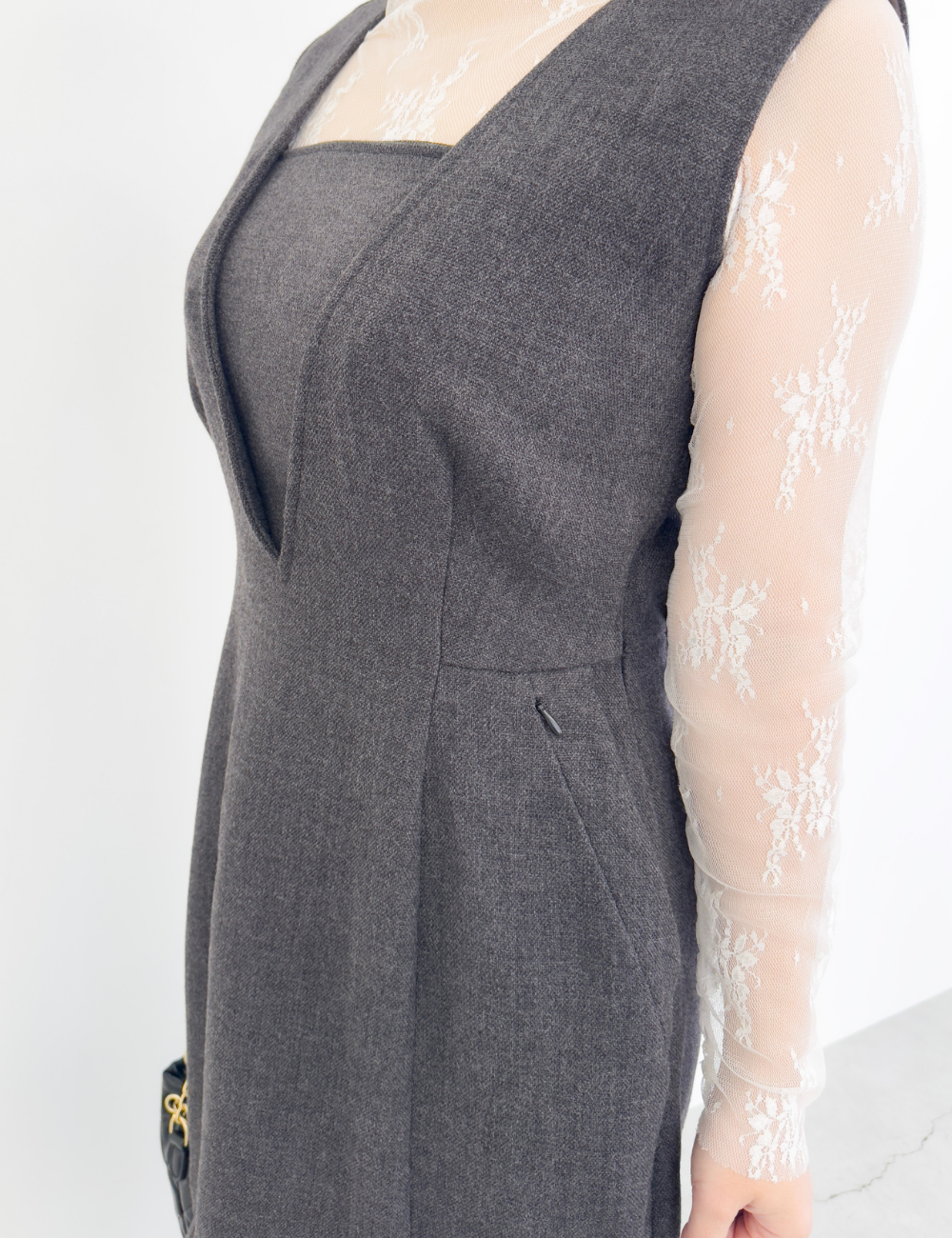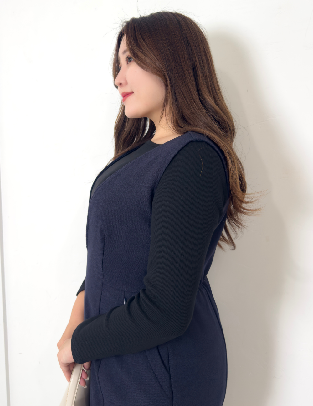 総裏地付きのため肌当たりが良く、透けを防ぎつつシルエットを美しく整えてくれます。