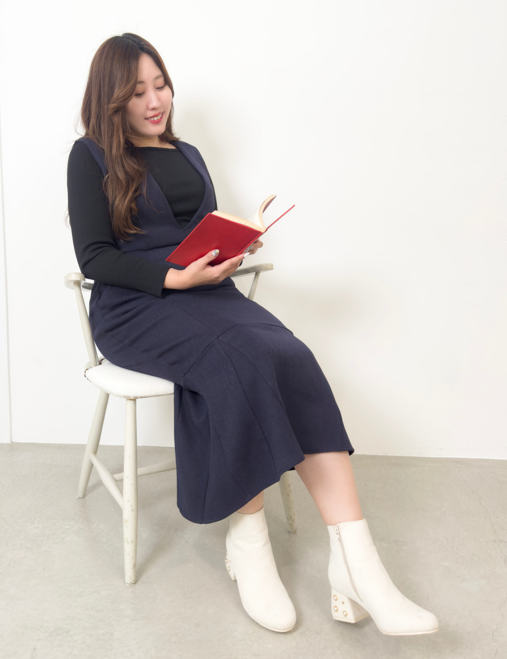 切り替え位置を少し高めにすることで膝まわりにゆとりが生まれ、脚が自然と長く見える効果も期待できます。