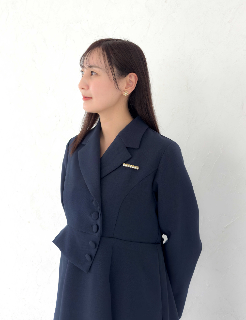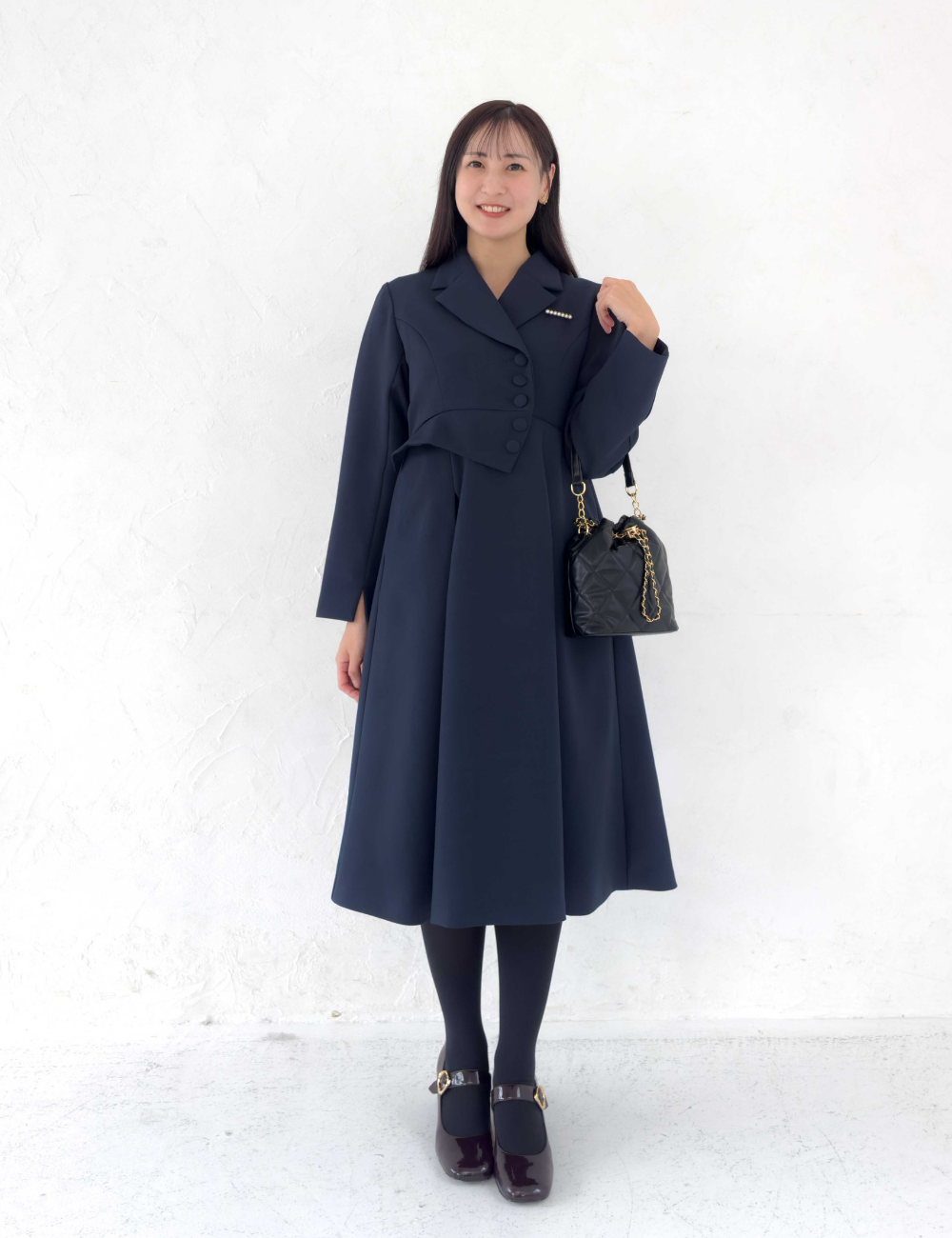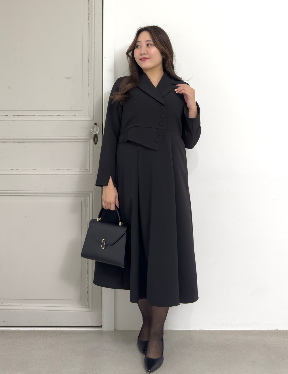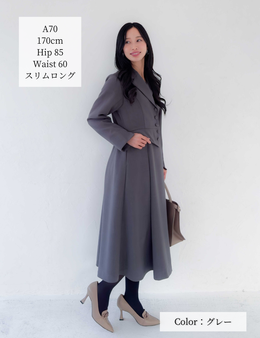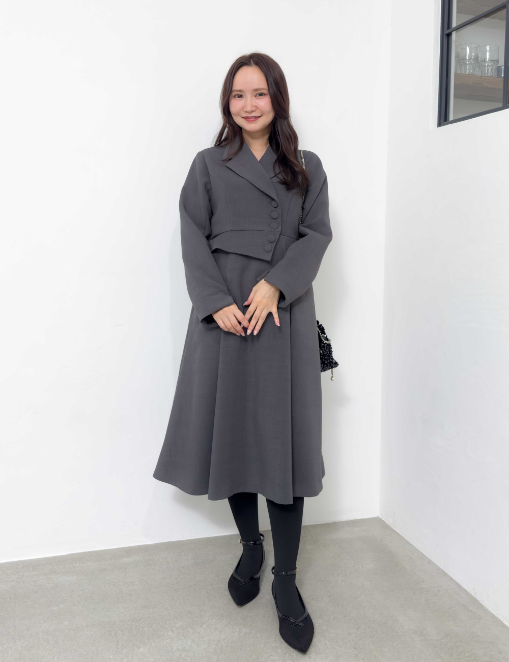 パネルラインが胸元に立体感を与える、上品なジャケット風ワンピース。