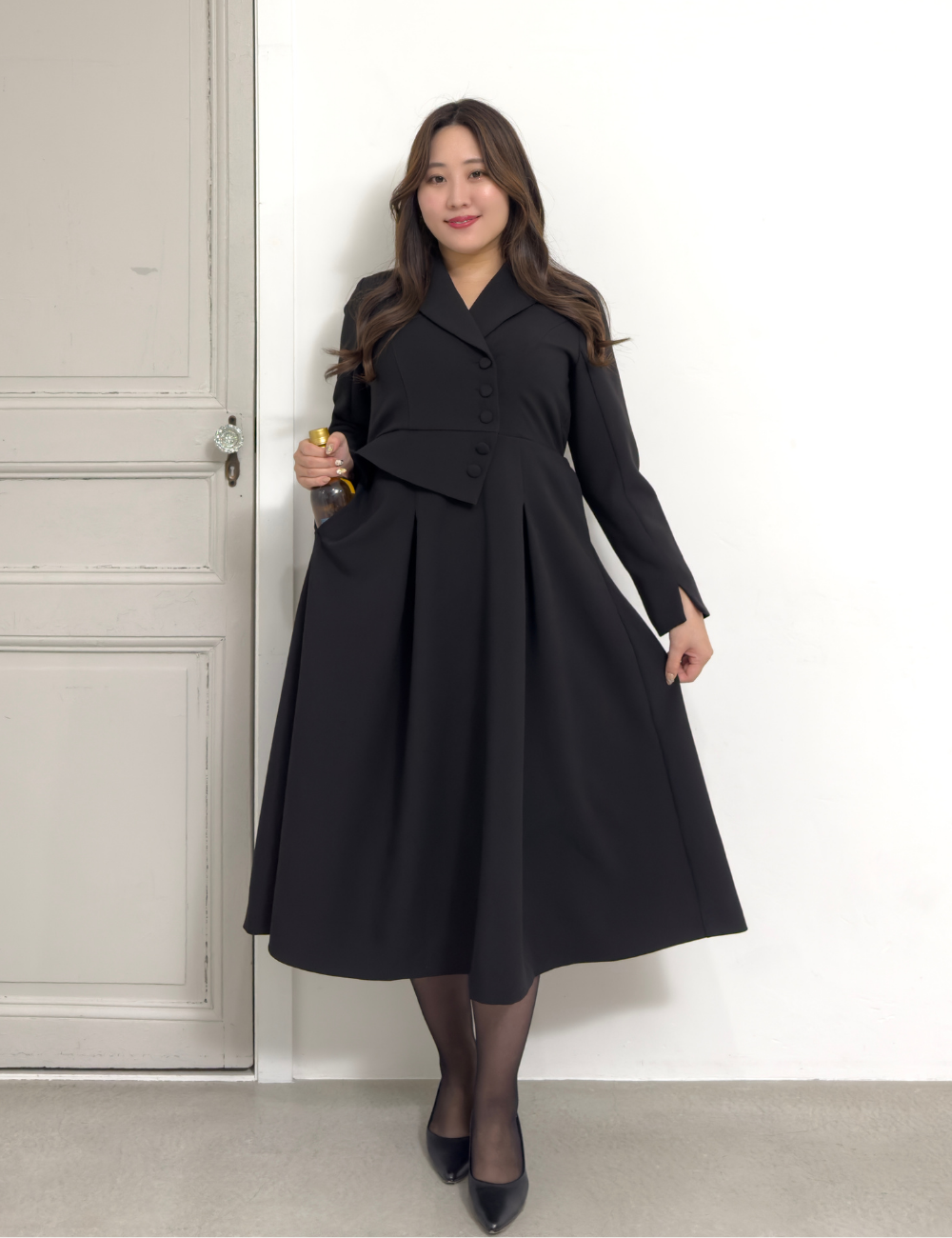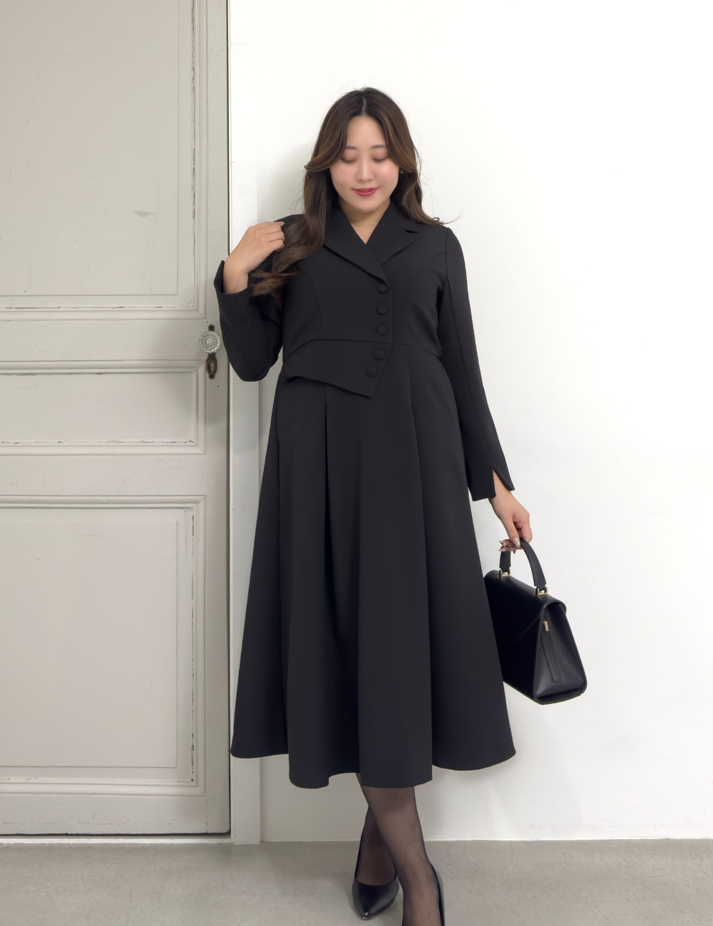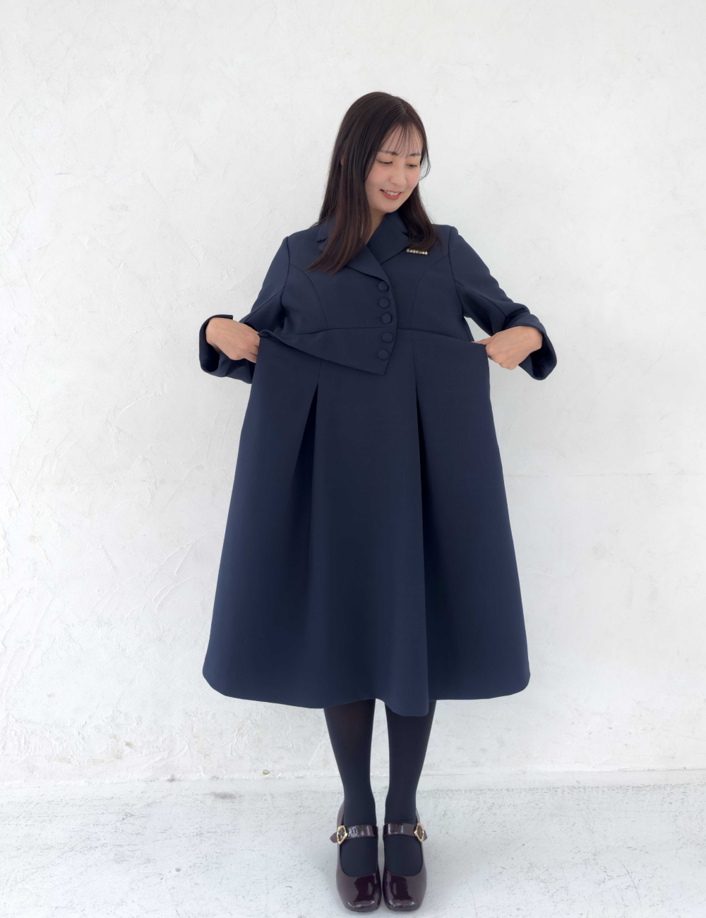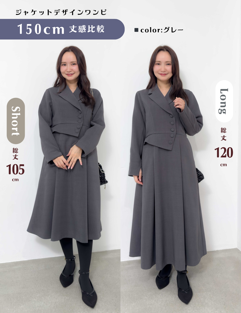 パネルラインが胸元に立体感を与える、上品なジャケット風ワンピース。