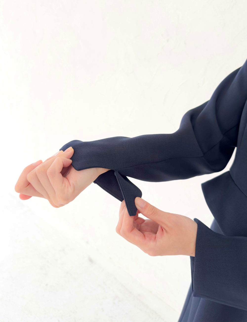 固さを感じさせない軽やかな着心地なのに、形はきちんと整う―そんな頼もしさを持った一着です。