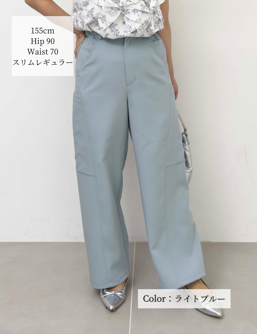 おしゃれさと実用性を両立した、ポケットデザインが魅力の一本! 切り替え位置にこだわり、スタイルアップを叶えながら収納力もプラスしました✨ スポーティーな要素を持ちつつ、きれいめな素材感でオフィスシーンにも活躍します!