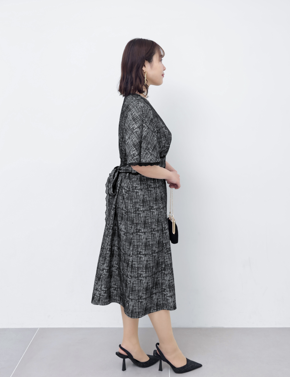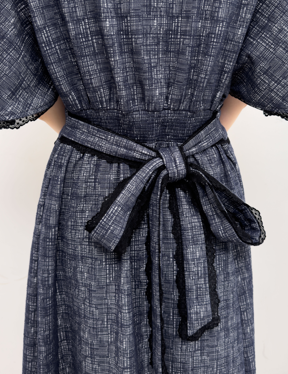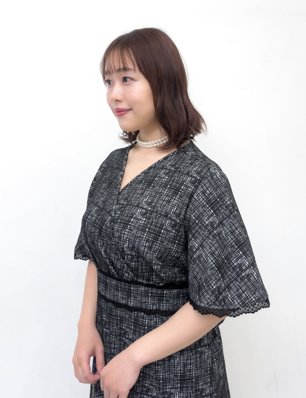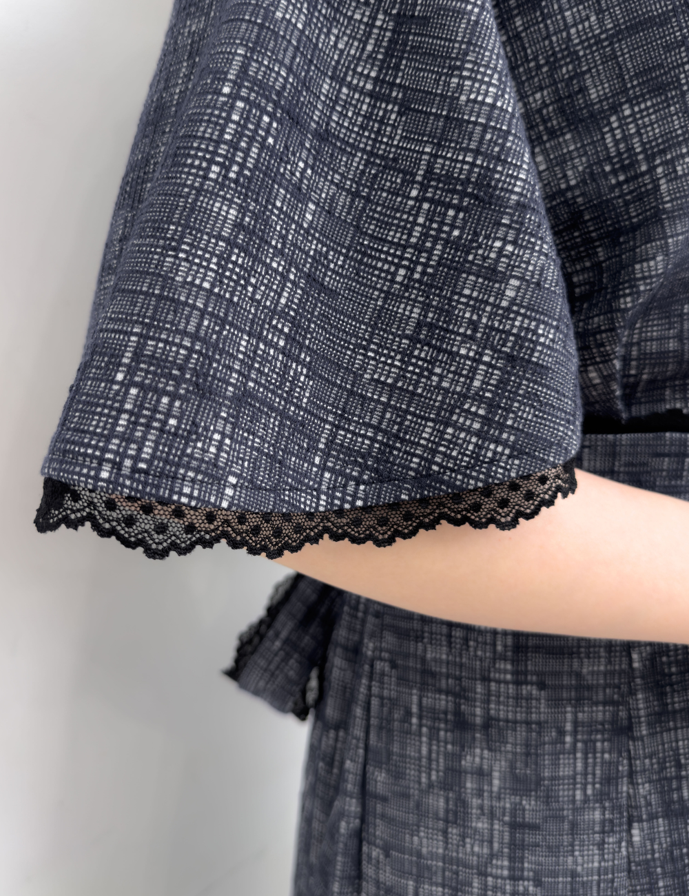 繊細な幾何学柄は立体感のあるエンボス生地を使用。上品さと着心地の良さを兼ね備えた一着です。