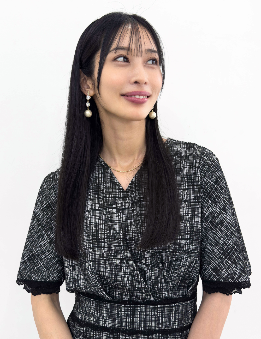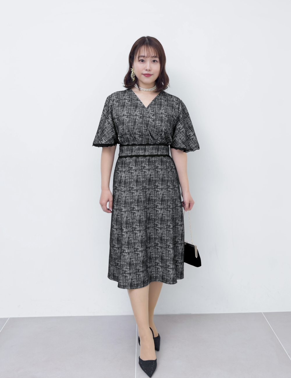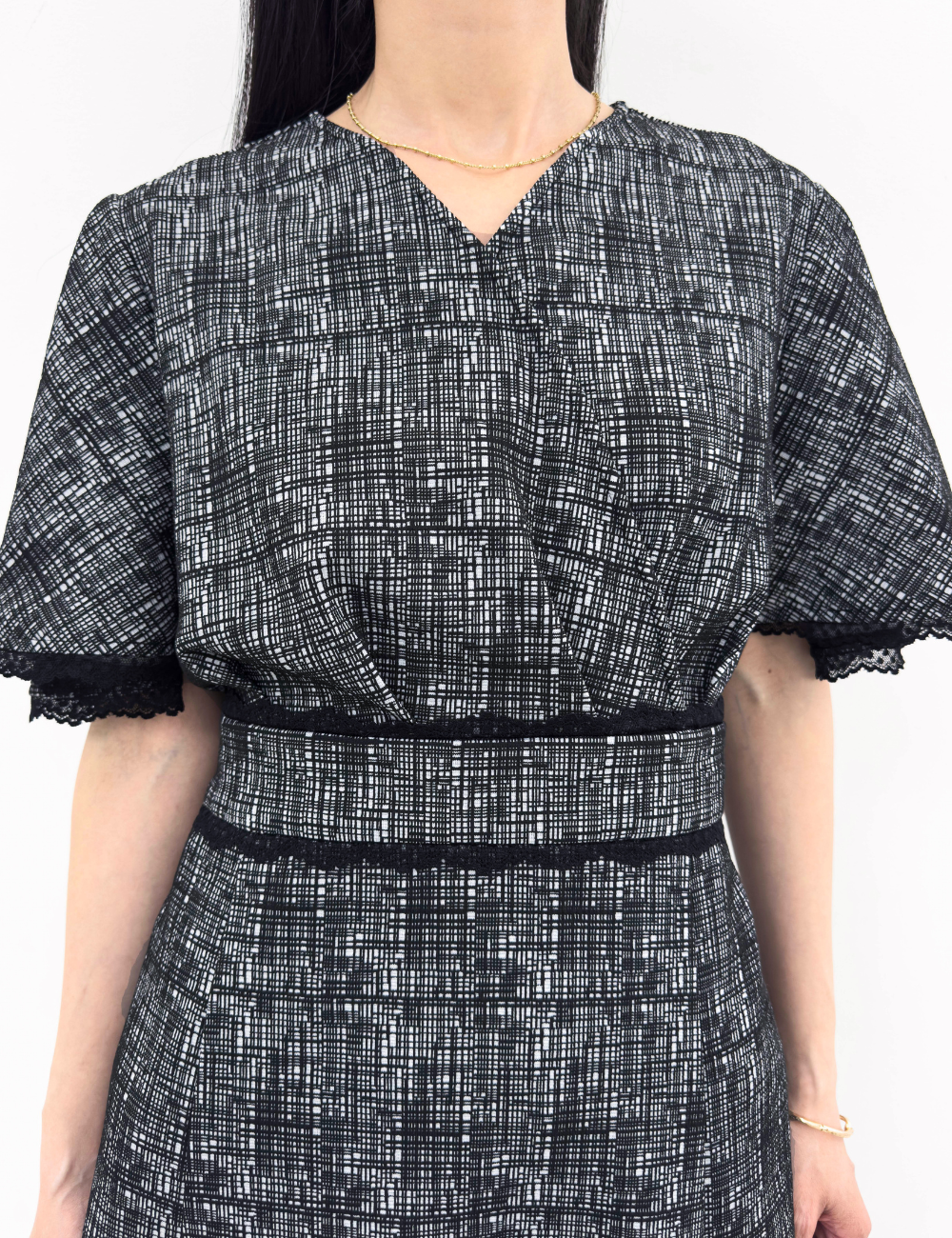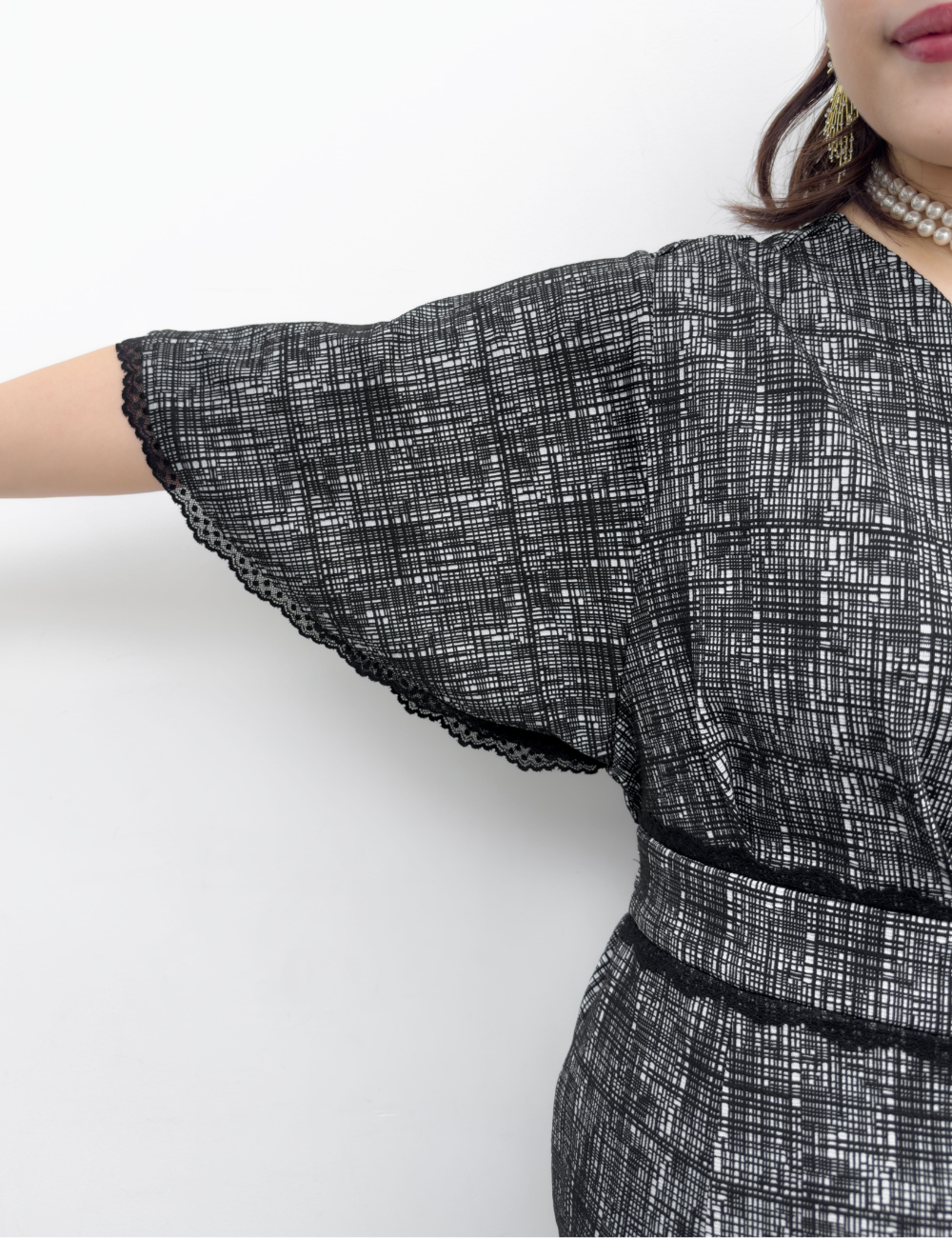 繊細な幾何学柄は立体感のあるエンボス生地を使用。上品さと着心地の良さを兼ね備えた一着です。