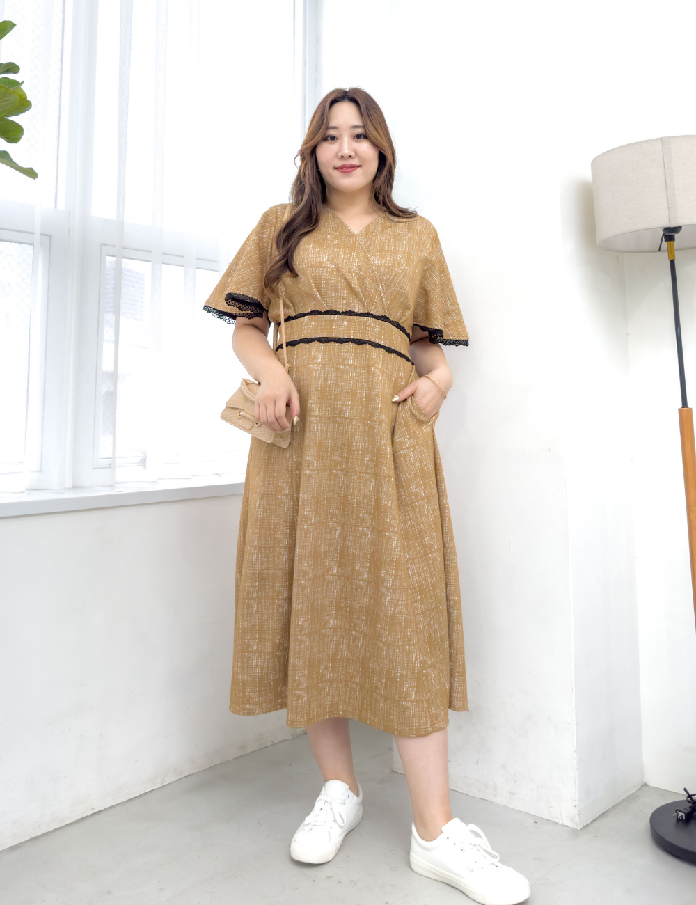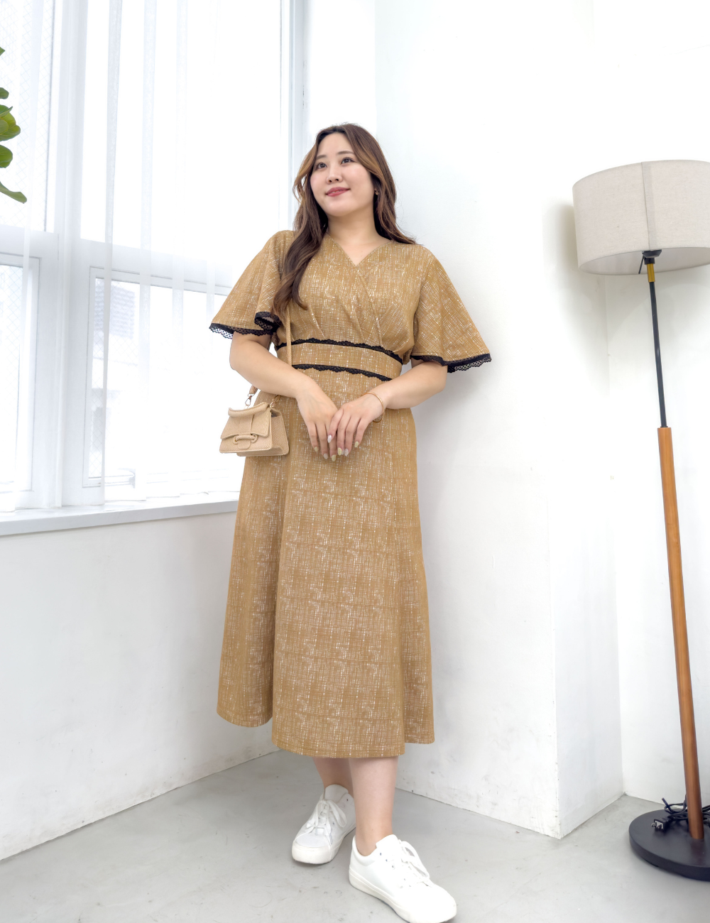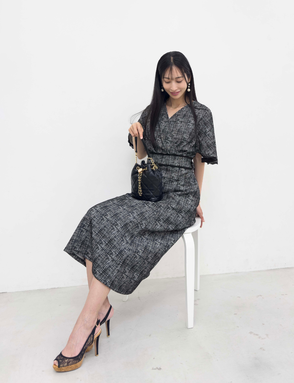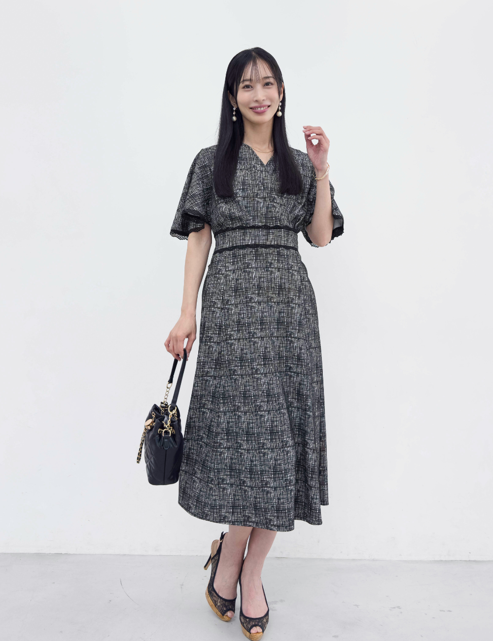 華やかなレーストリムが目を引くワンピース。