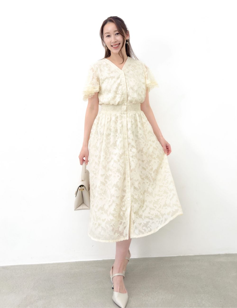 木漏れ日のような立体感のあるジャガード素材が涼しげなワンピースが登場!